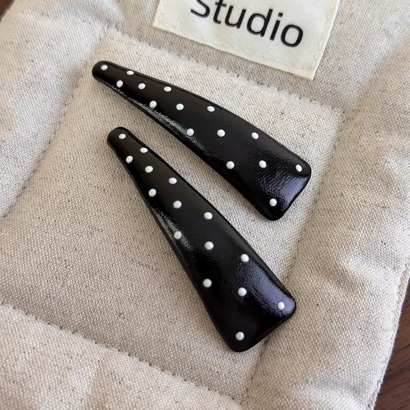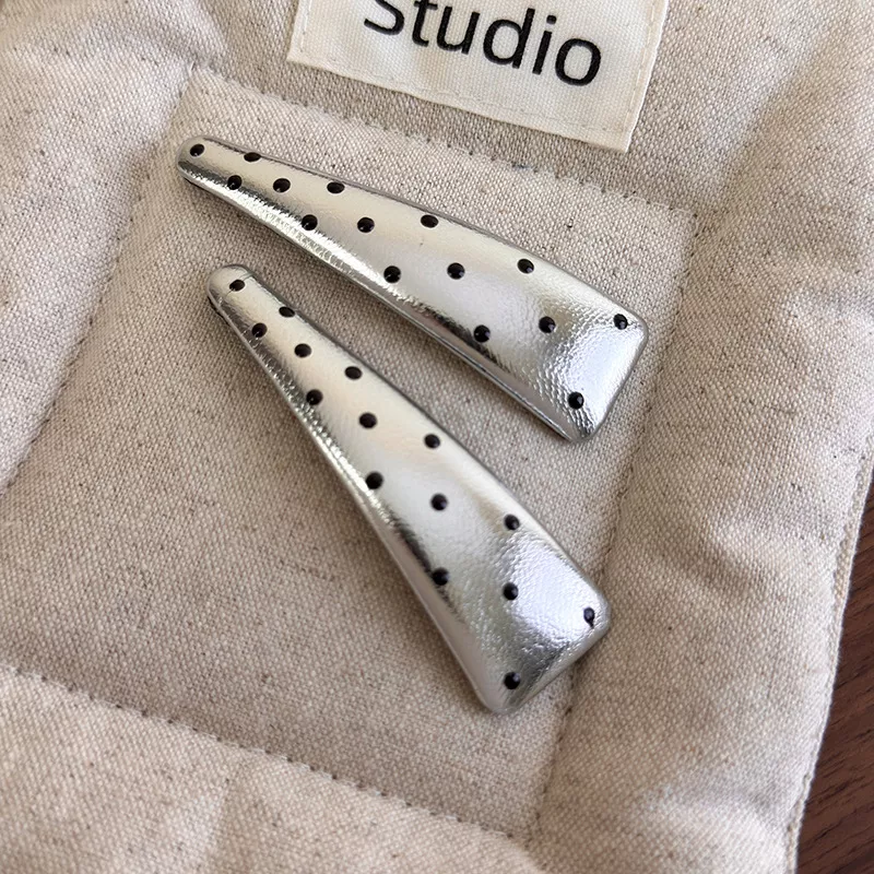 Chic Silver Leather Hair Clips with Polka Dots – Stylish Barrettes