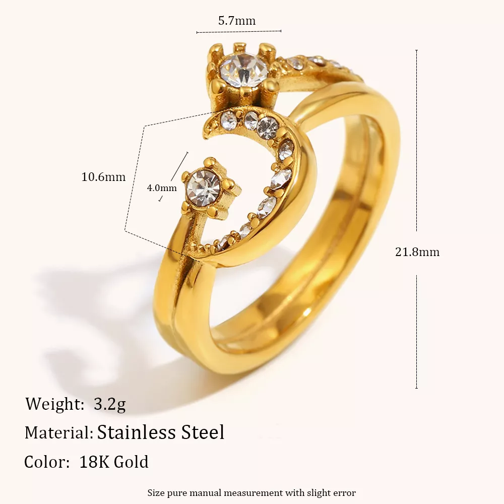 Chic Zircon Inlaid Moon Shaped Stainless Steel Ring – Fashion Jewelry Accessory