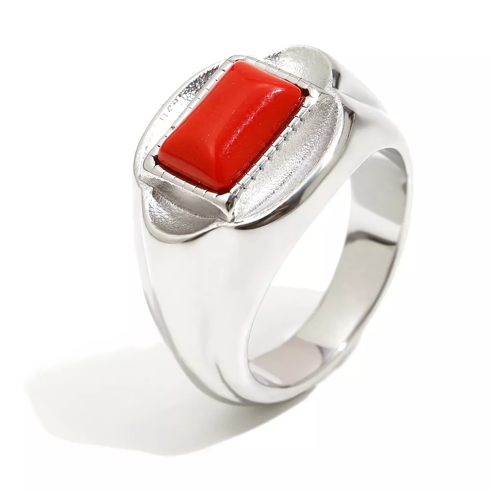 • Unique Design – The geometric shape and red gemstone set it apart from other rings.