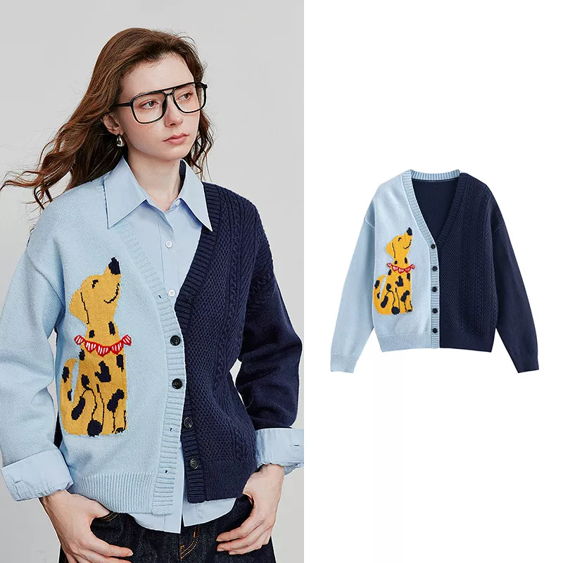 Don’t wait to enhance your wardrobe with this eye-catching cardigan! Invest in our Color-Contrasting Dog Jacquard V-Neck Cardigan today and enjoy the perfect mix of style and comfort. Order now and let your fashion reflect your unique personality this autumn!