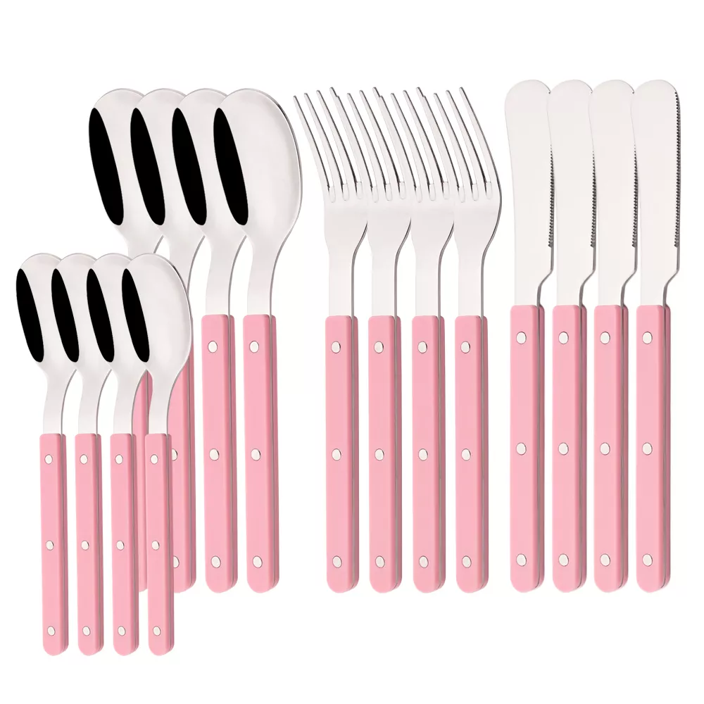 Bring style, comfort, and charm to every meal with this beautiful 16-piece pink and silver cutlery set. Designed to turn everyday dining into a special experience, this set combines sleek stainless steel with soft pink acrylic handles for a modern, eye-catching look. Whether you’re hosting guests, enjoying family dinners, or setting up your dream kitchen, this flatware set adds a refined and stylish touch to your table.