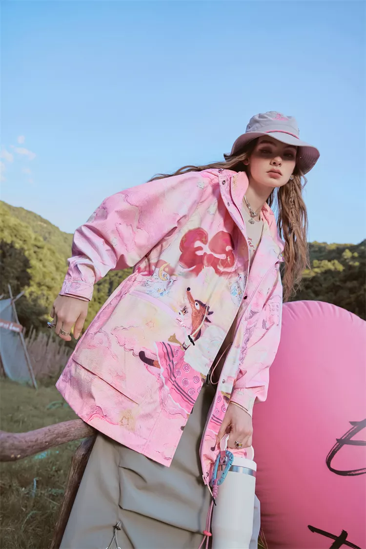 Embrace the spirit of adventure and style with this vibrant and playful three-proof jacket. Featuring a fun cartoon anime full-print design, this loose-fitting, hooded jacket combines fashion with function for a stylish yet practical addition to your autumn wardrobe. Whether you’re gearing up for a day of outdoor exploration or just need a cozy, fashionable layer for your daily commute, this jacket has got you covered.