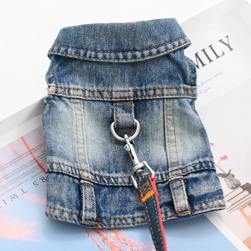 Cool Denim Dog Jacket with Leash Ring – Cowboy Vest for Small & Medium Pets