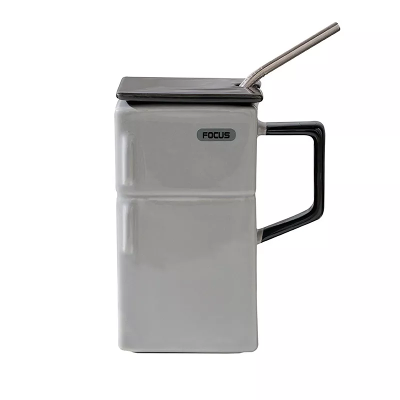 Creative Retro Refrigerator Ceramic Mug with Lid & Straw (600ml)