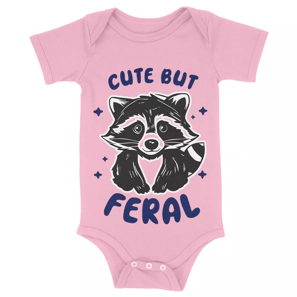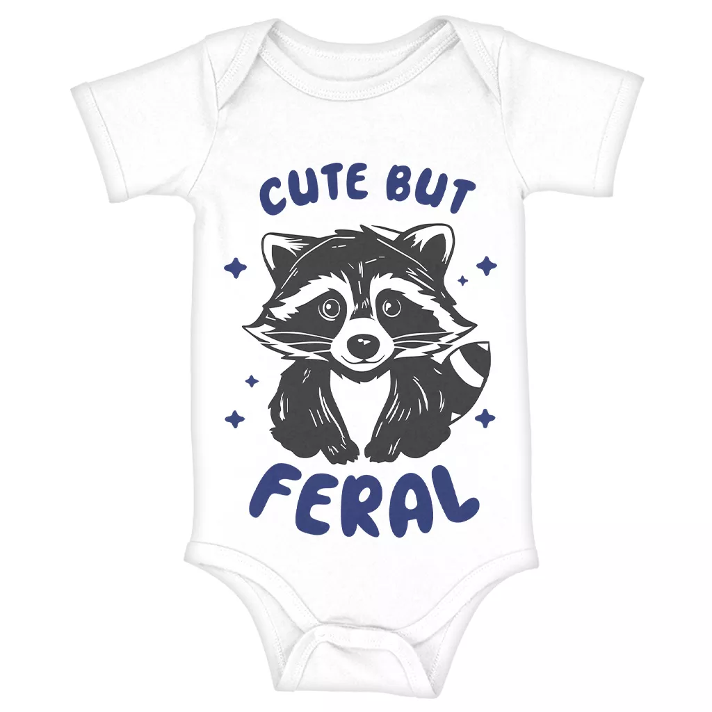 Cute But Feral Baby Onesie – Meme Raccoon Baby Bodysuit – Animal Graphic Baby One-Piece