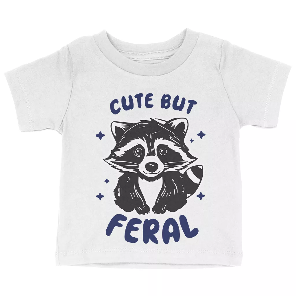 Cute But Feral Baby T-Shirt – Meme Raccoon T-Shirt for Kids – Animal Graphic Short Sleeve Tee
