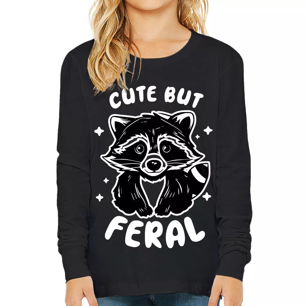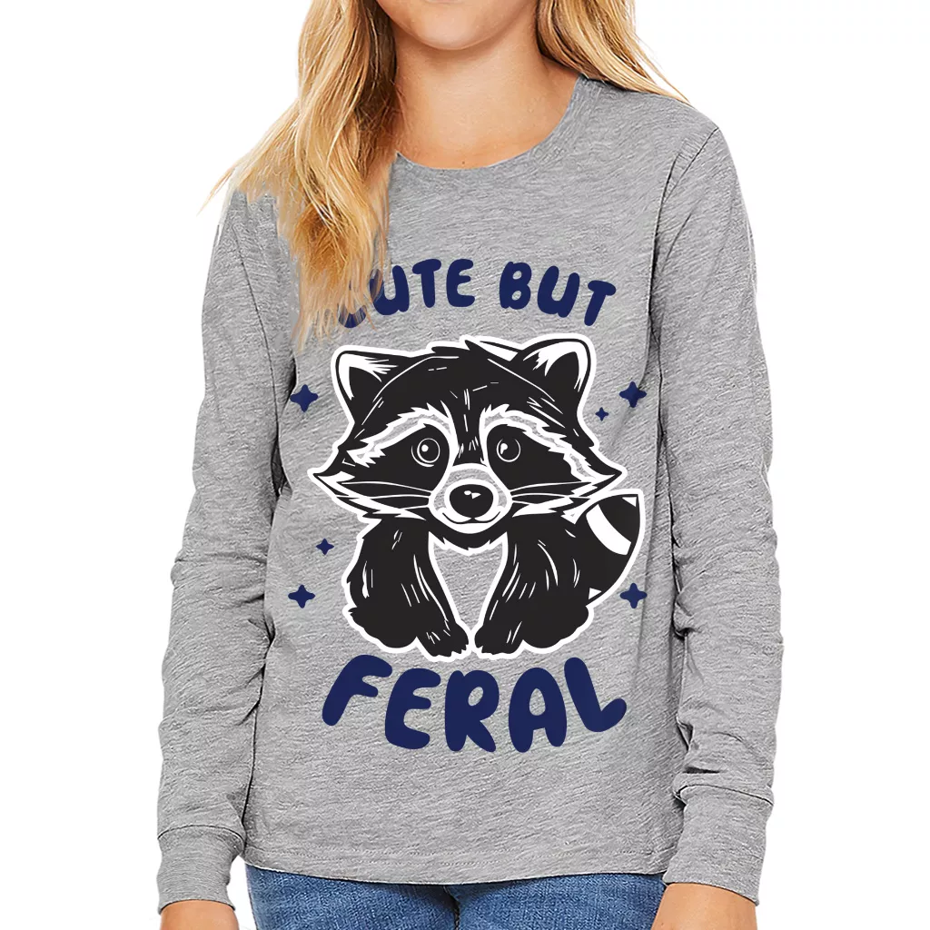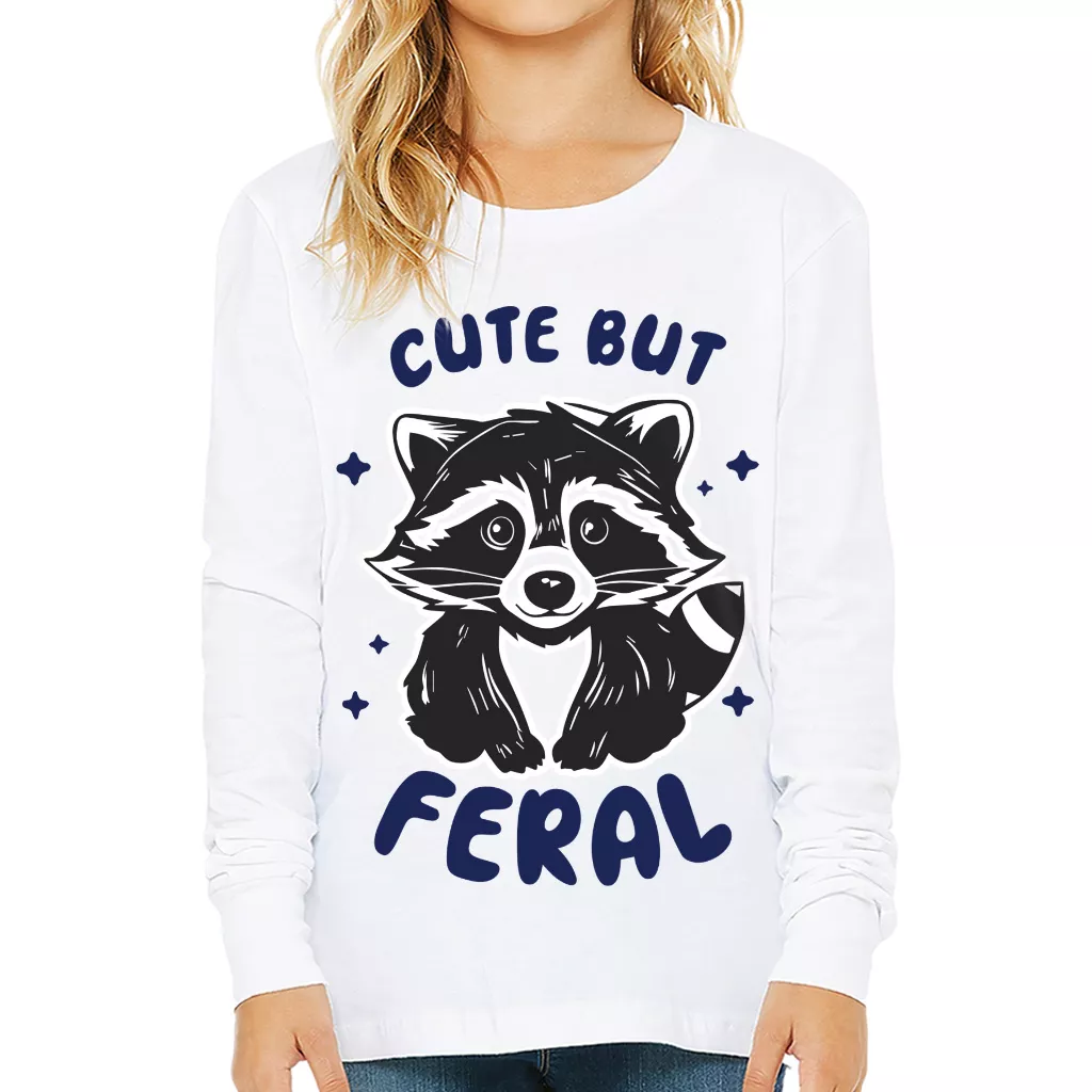 Cute But Feral Kids’ Long Sleeve T-Shirt – Meme Raccoon T-Shirt for Kids – Animal Graphic Tee for Boys Girls