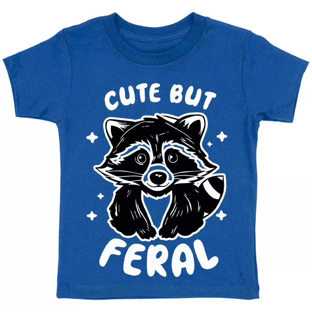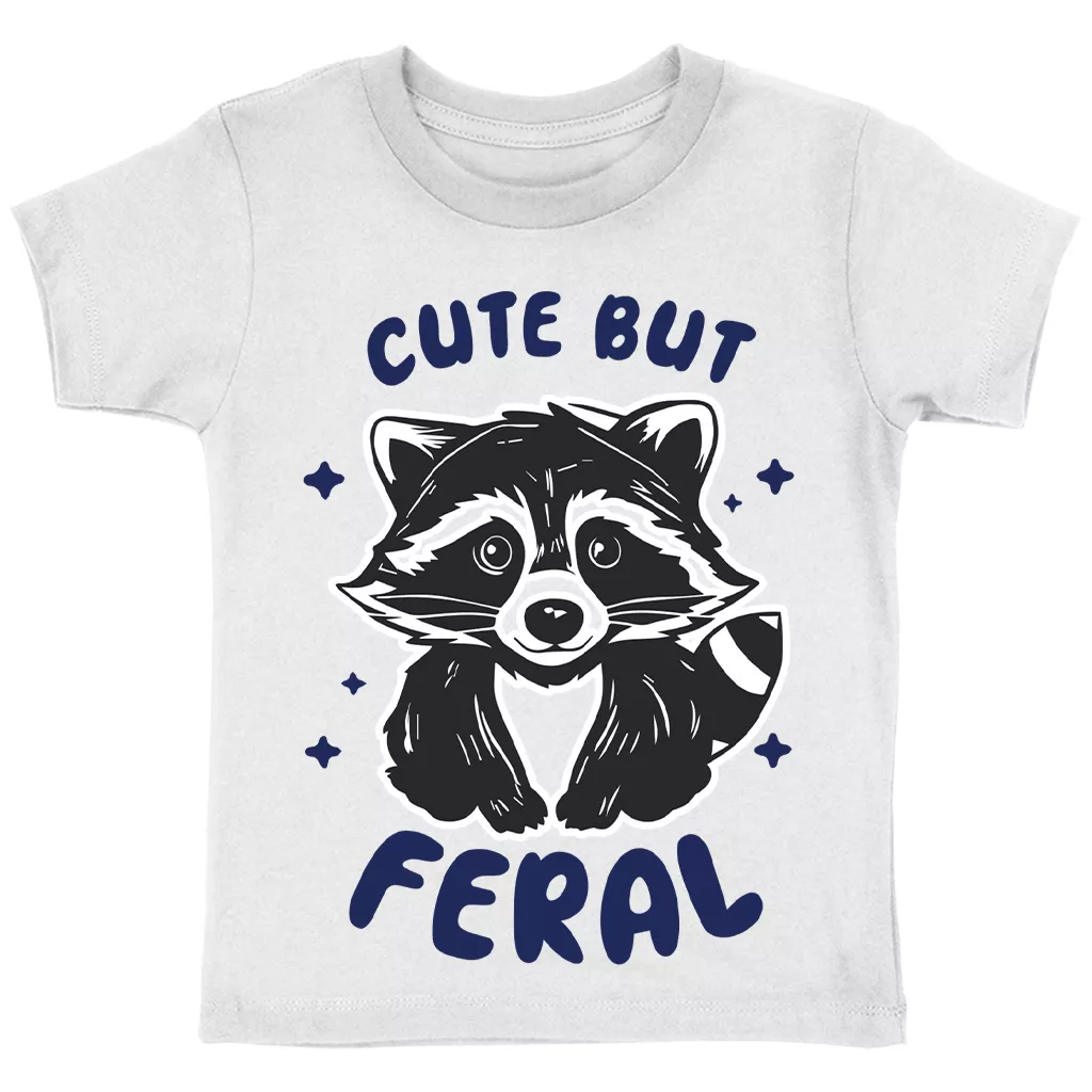 Cute But Feral Toddler Cotton T-Shirt – Animal Graphic Short Sleeve Tee – Meme Raccoon T-Shirt for Kids