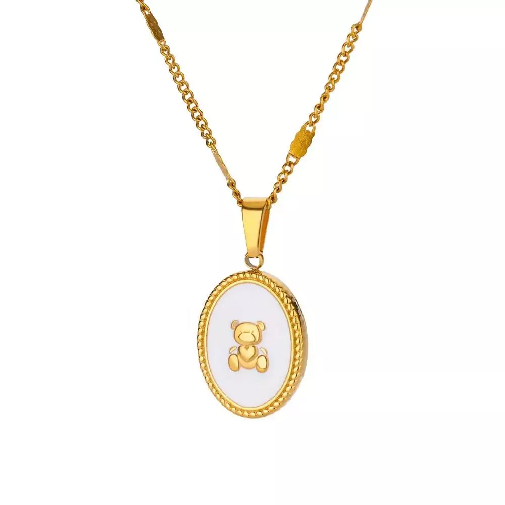 Elevate your accessory game with this Cute Bear Pendant Necklace, a whimsical and charming piece designed to add a playful yet elegant touch to any outfit. Featuring a petite white oval pendant with an engraved bear design, this necklace perfectly captures a soft, aesthetic vibe. Crafted from high-quality stainless steel, it’s made to last, resisting water and daily wear without losing its shine. Whether you’re dressing up for a casual brunch or adding a little sparkle to your everyday look, this necklace is the finishing touch your style’s been missing.