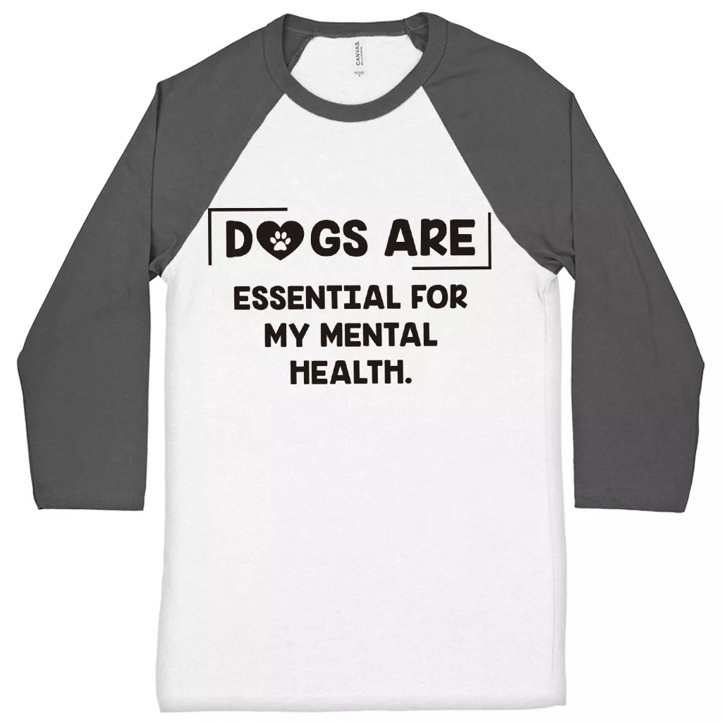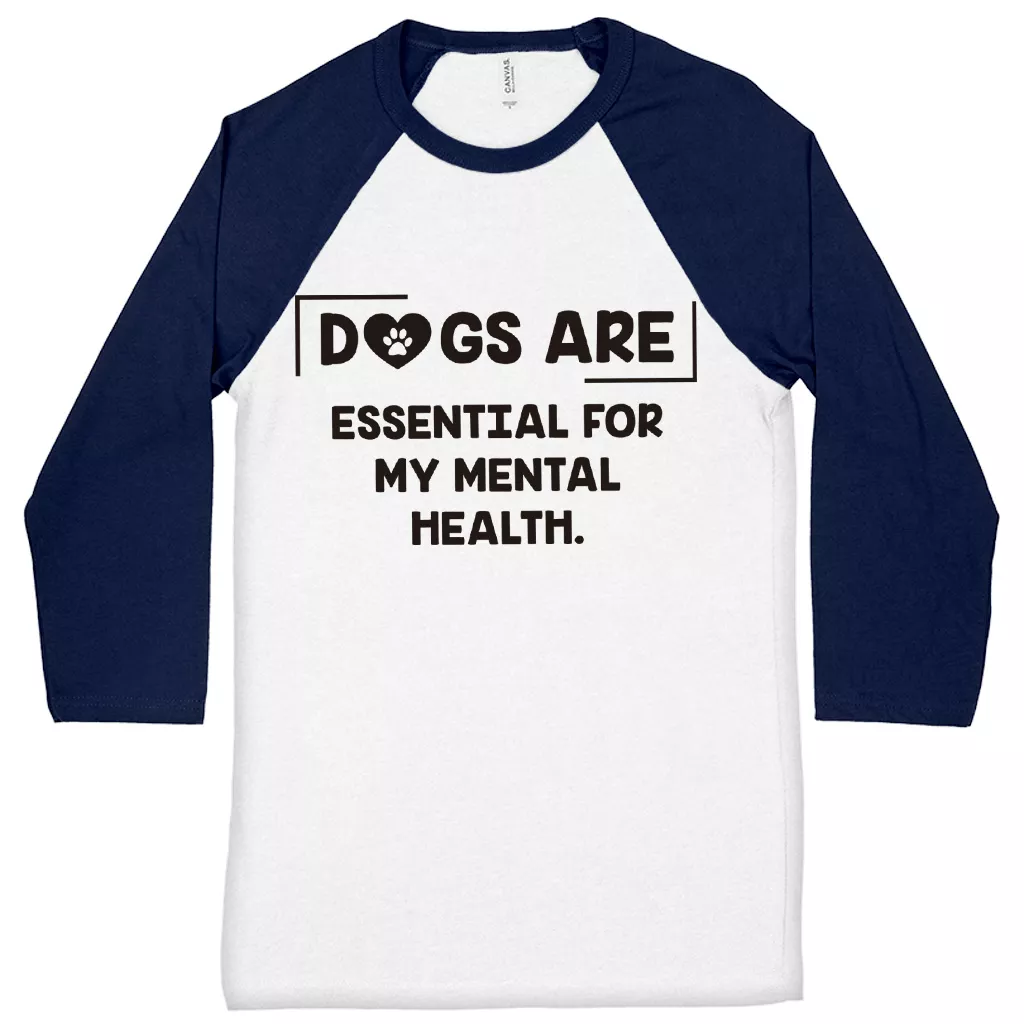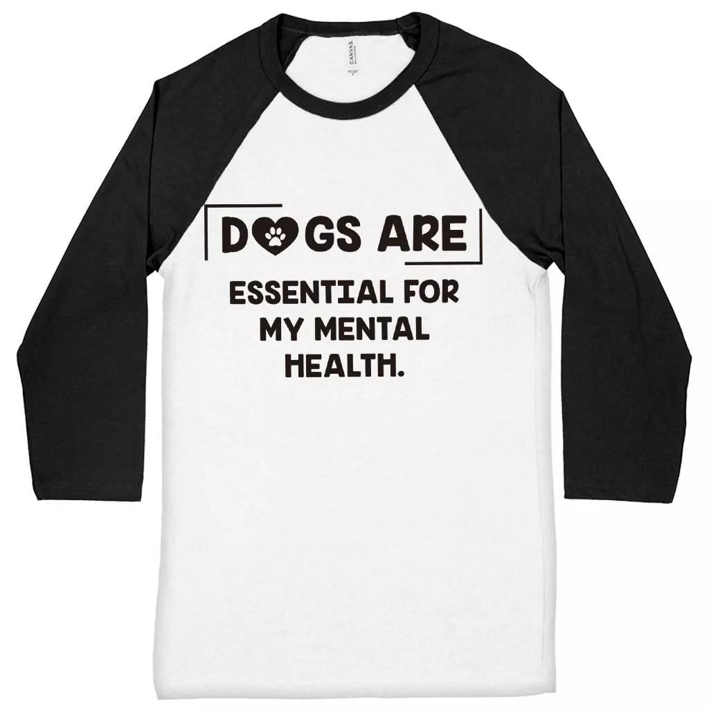 Dogs Are Essential For My Mental Health Baseball T-Shirt – Dog Lover 3/4 Sleeve – Cute Puppy Raglan Jersey Shirt