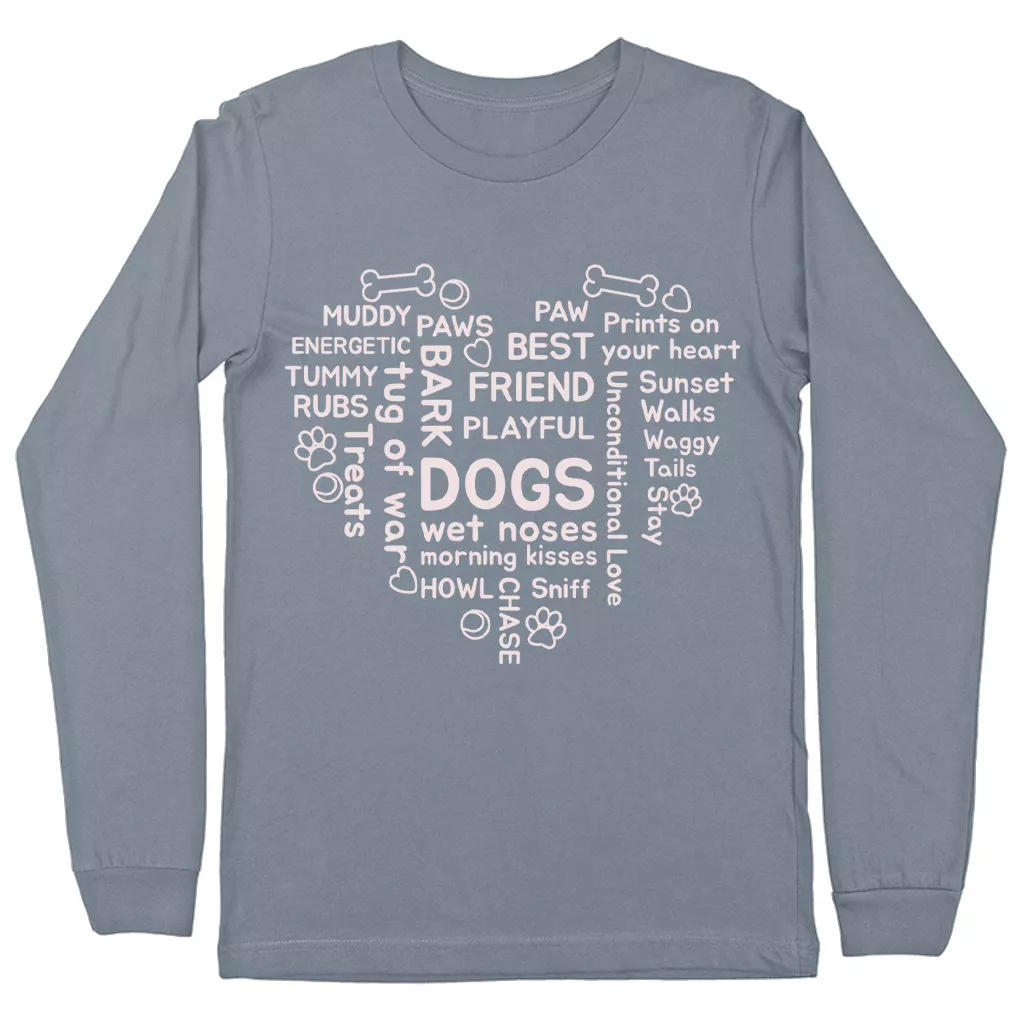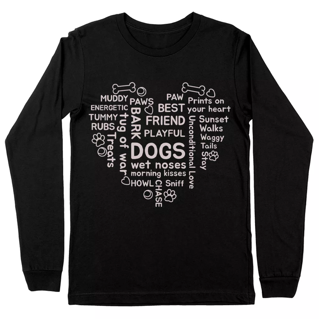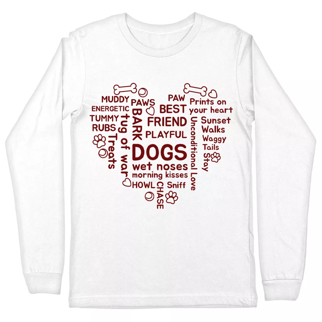 Dogs Words in Heart Long Sleeve T-Shirt – Dog Owner T-Shirt – Gift for Dog Parent Basic Tee