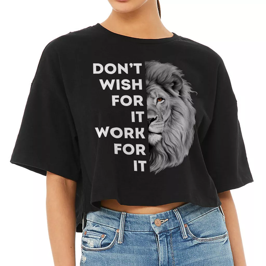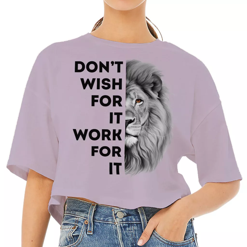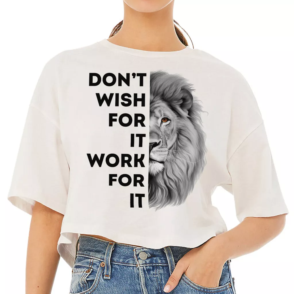 Don’t Wish for It Work for It Cropped T-Shirt – Lion Trendy Tee – Work Hard Quote Women’s Basic T-Shirt