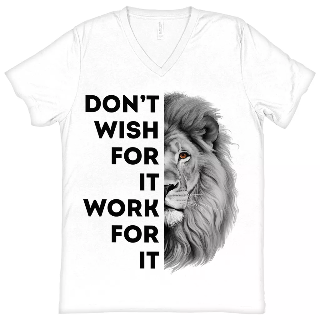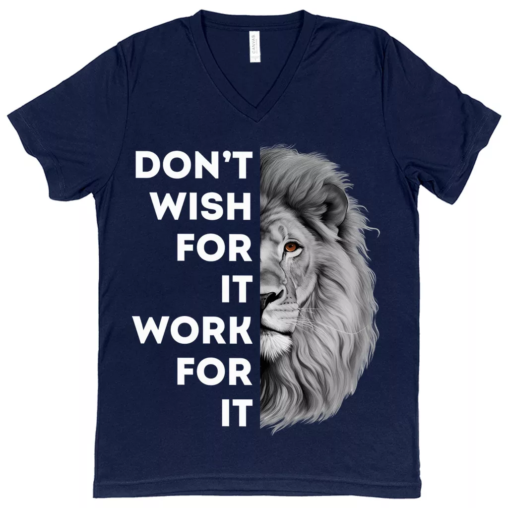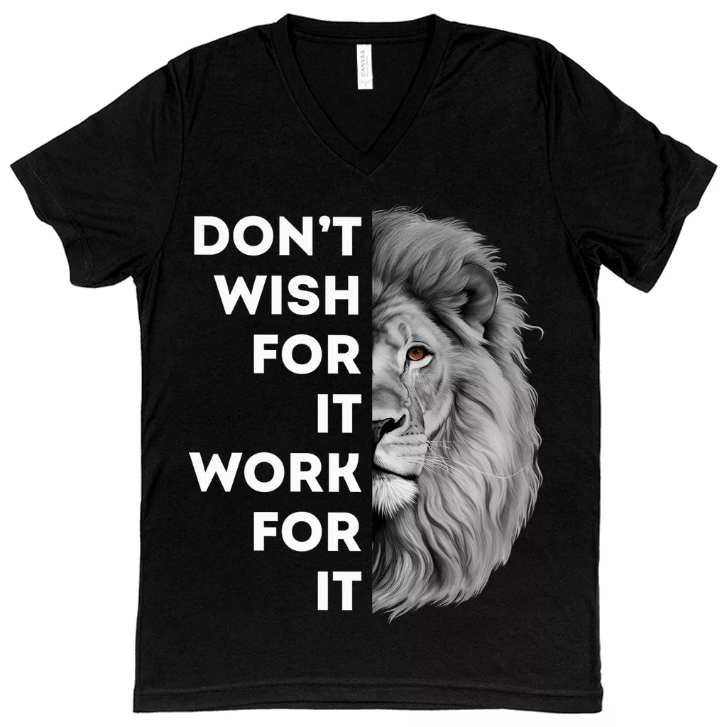 Don’t Wish for It Work for It V-Neck T-Shirt – Work Hard Quote Basic T-Shirt – Lion Tee