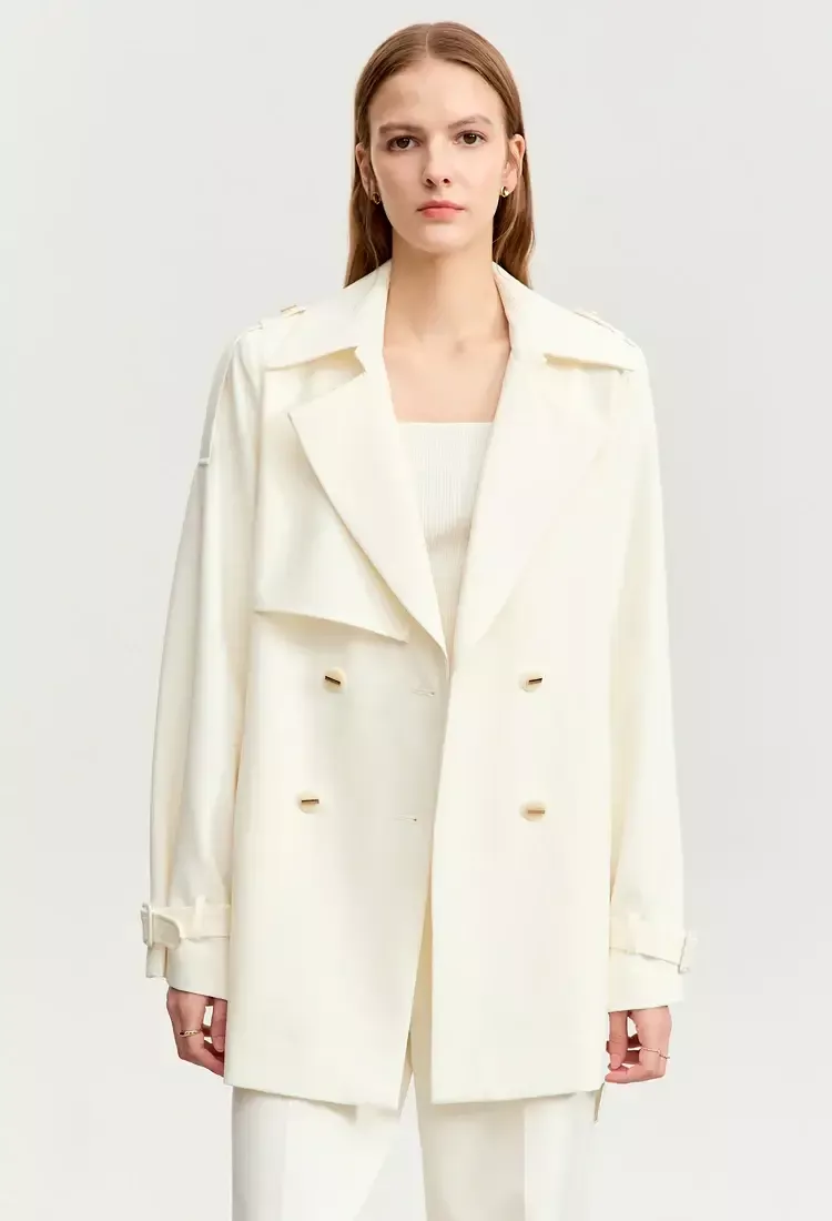 This trench coat stands out for its classic double-breasted design and elegant, timeless appeal. Its high-quality material blend ensures comfort and flexibility, making it perfect for layering over various outfits during chilly autumn and winter months. Whether you’re pairing it with jeans, skirts, or dresses, this coat effortlessly elevates any look with a polished and chic vibe.