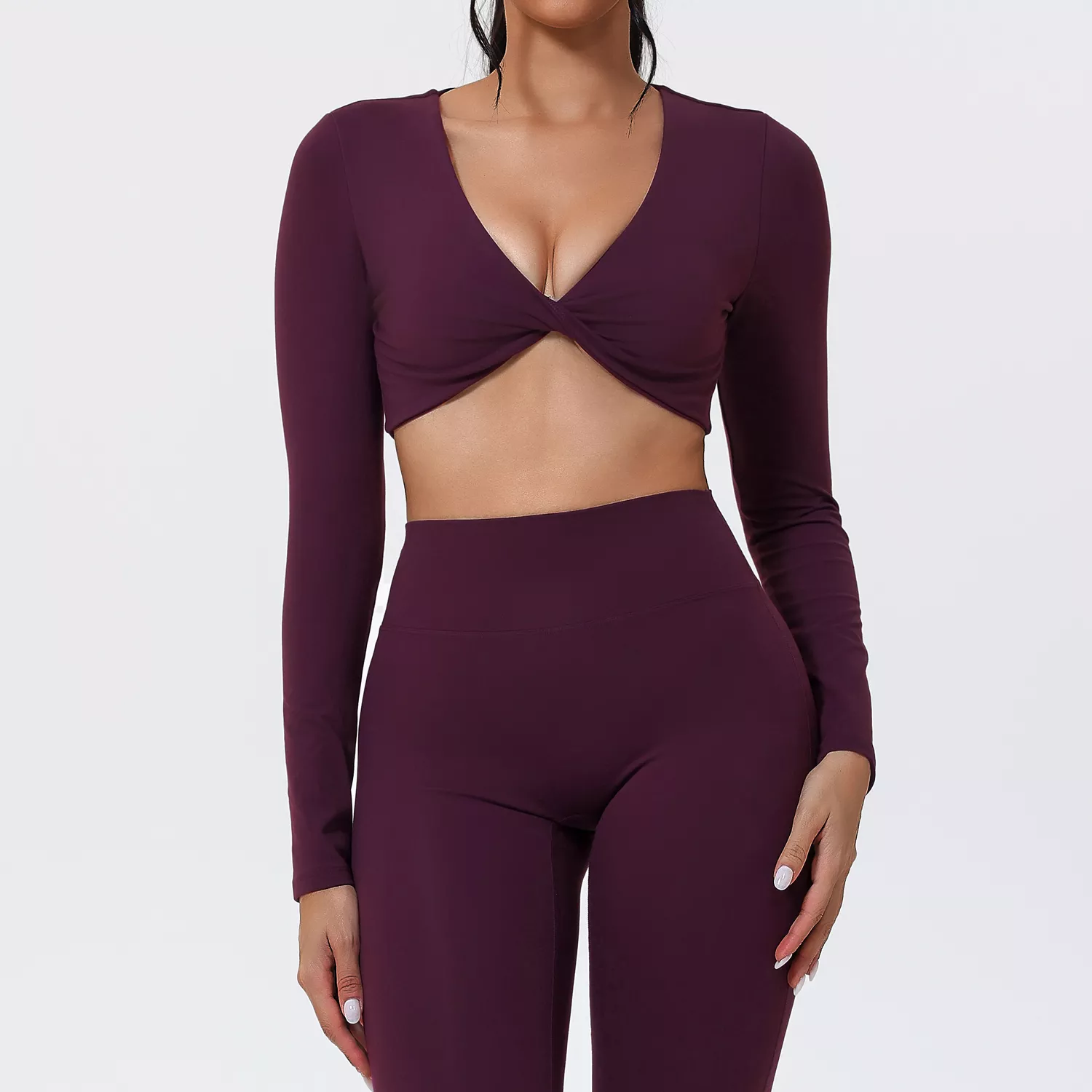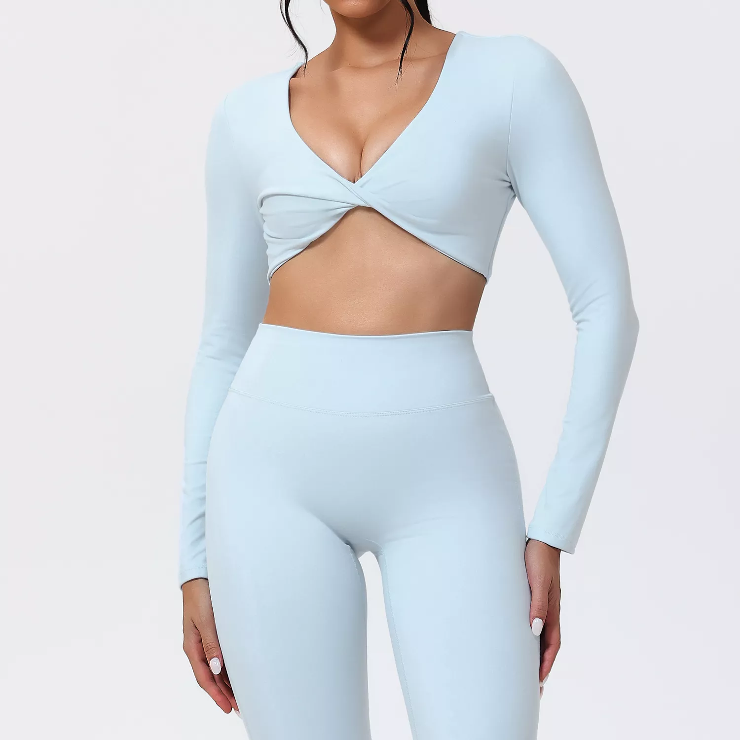 Eco-Friendly Twist-Knot Long Sleeve Cropped Sports Top for Women