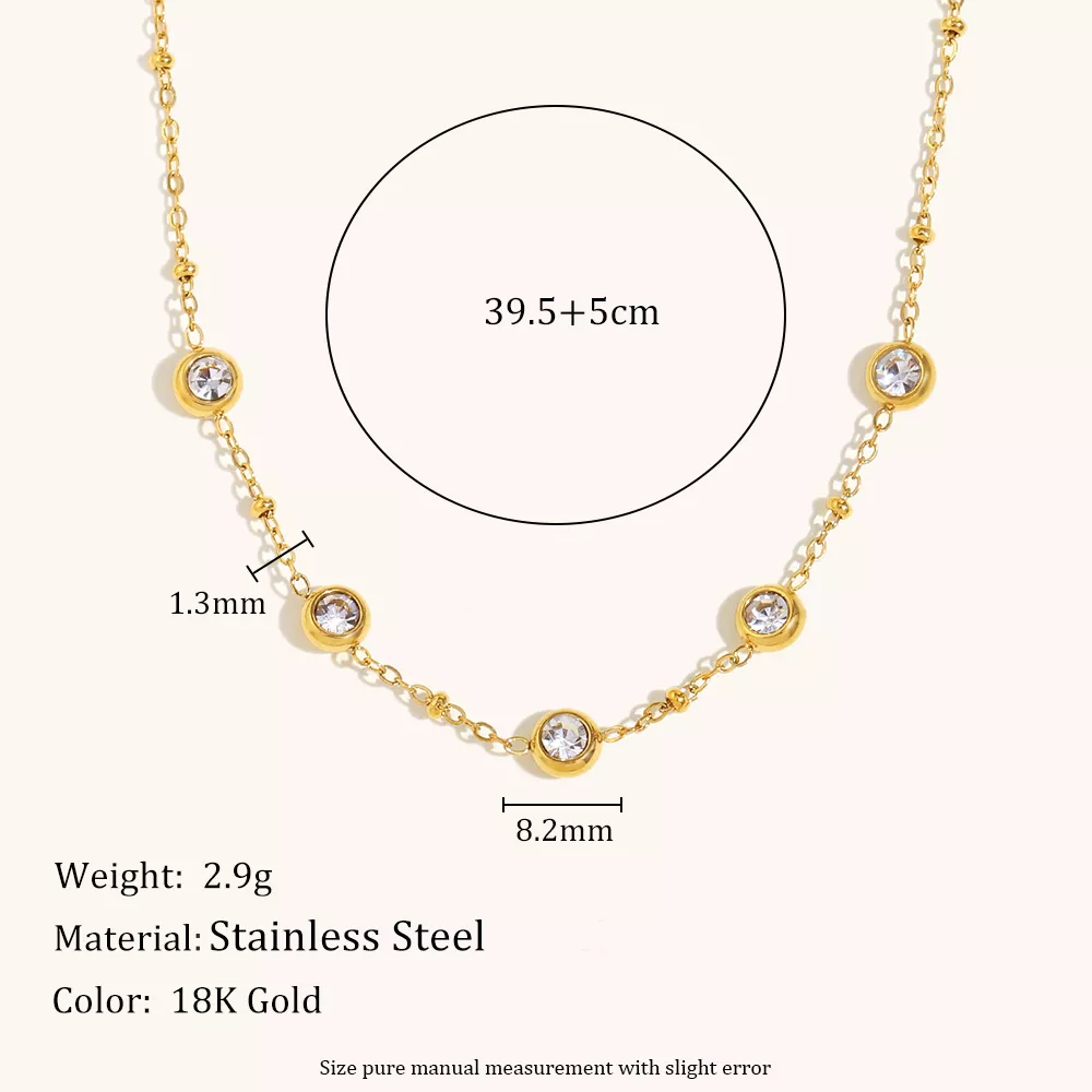 Discover the perfect blend of simplicity and sophistication with this stunning 5-piece cubic zirconia bead necklace. Crafted from durable 316L stainless steel and finished with a luxurious 18K gold plating, this necklace offers a delicate yet durable accessory that enhances any outfit. Its subtle sparkle from the high-quality zircon stones adds just the right touch of glamour, making it an ideal choice for women who appreciate refined jewelry that shines without overwhelming.