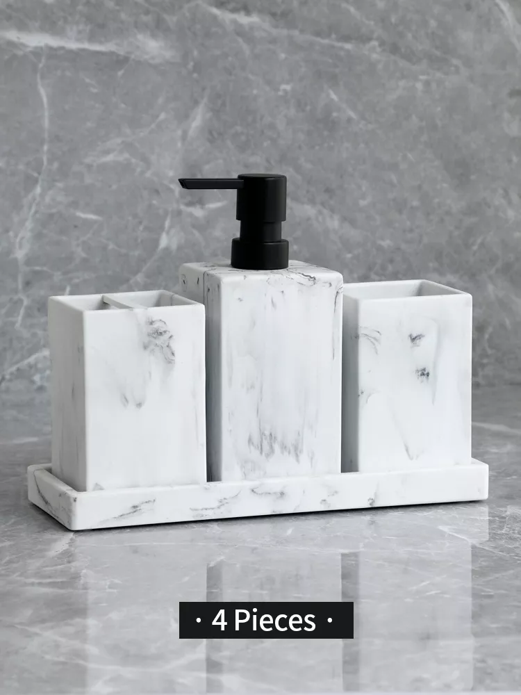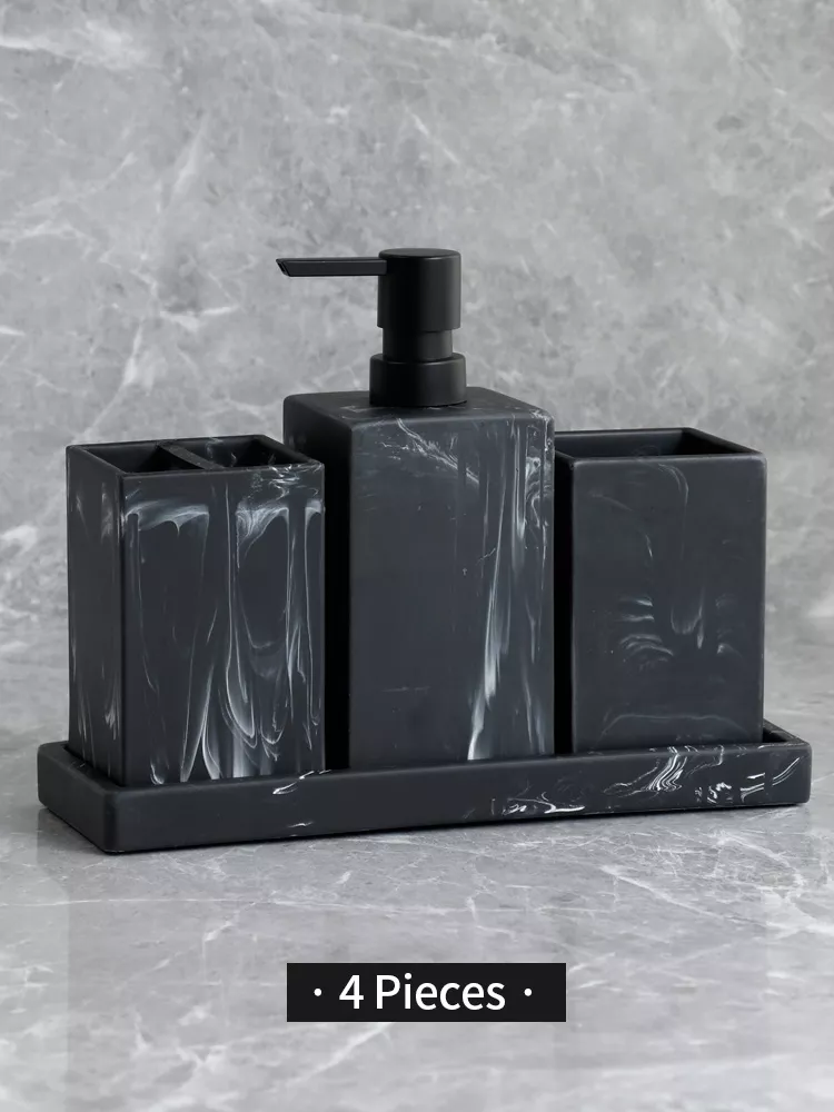 Elegant Black & White Marble Resin Bathroom Accessories 4-Piece Set