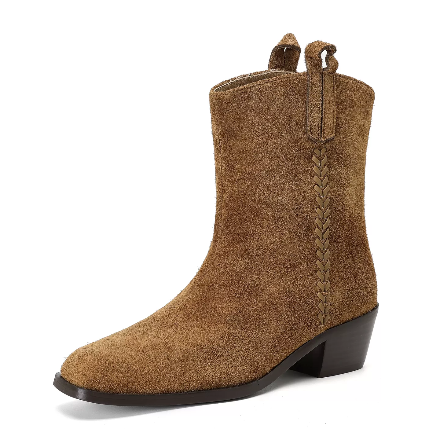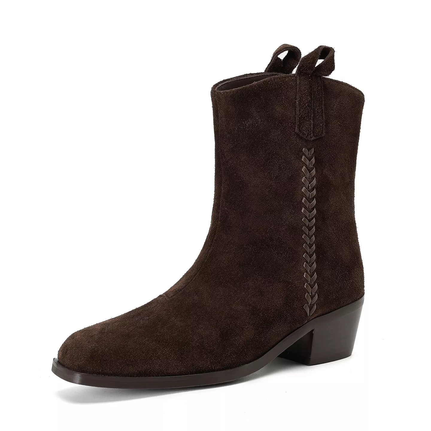 Meet your new go-to boots for the season—crafted for women who love style, comfort, and confidence in every step. These elegant brown ankle boots blend a chic retro look with modern everyday wearability. Designed with luxurious cow suede and a smooth square toe, they elevate any outfit while keeping your feet warm and cozy during colder days.