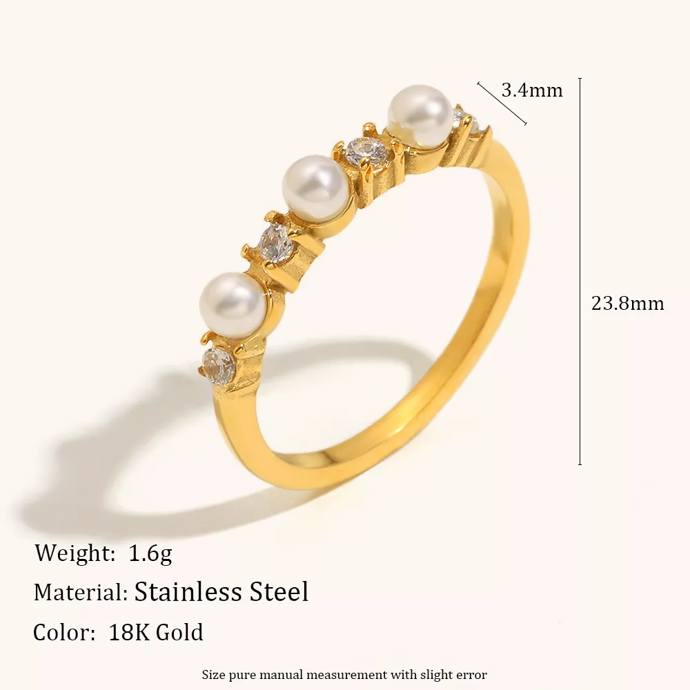 Elegant Imitation Pearl Zircon Inlaid Stainless Steel Ring – Trendy Jewelry