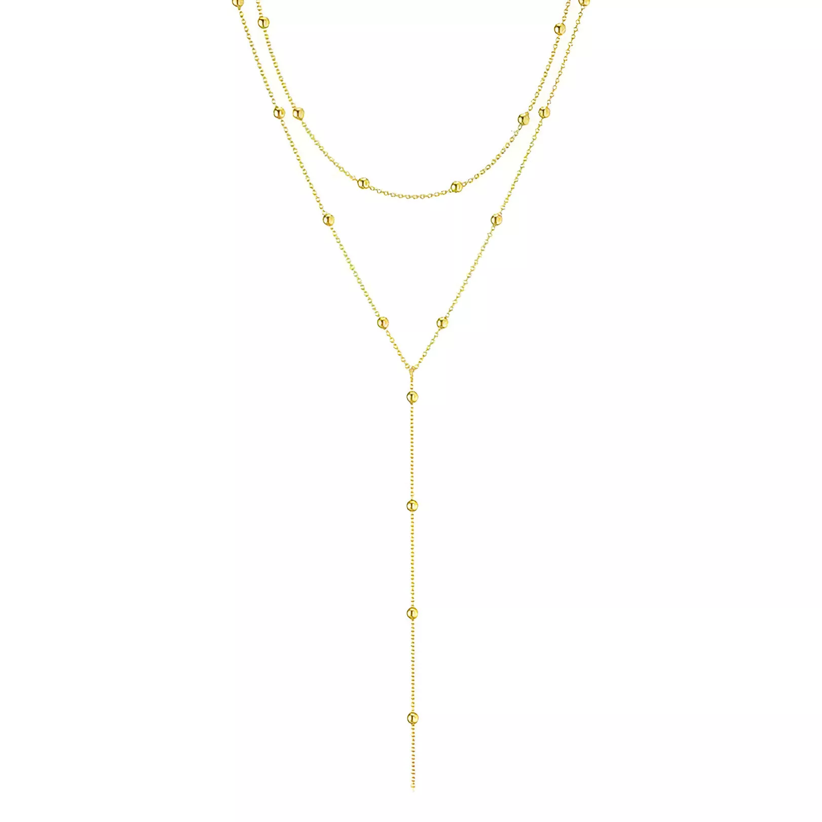 Elegant Stainless Steel Multilayer Y Necklace – Geometric Fringe Bead Design