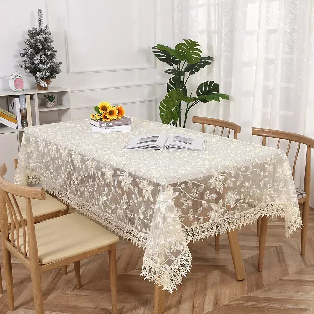 Transform your dining or coffee table into a picture of refined charm with this Embroidered Vintage Lace Tablecloth. Crafted with exquisite attention to detail, this white rectangular tablecloth brings a delicate balance of sophistication and warmth to any setting. Whether it’s a cozy afternoon tea or a grand wedding banquet, its hollow-out floral lace pattern instantly adds a touch of romance and luxury to your décor.