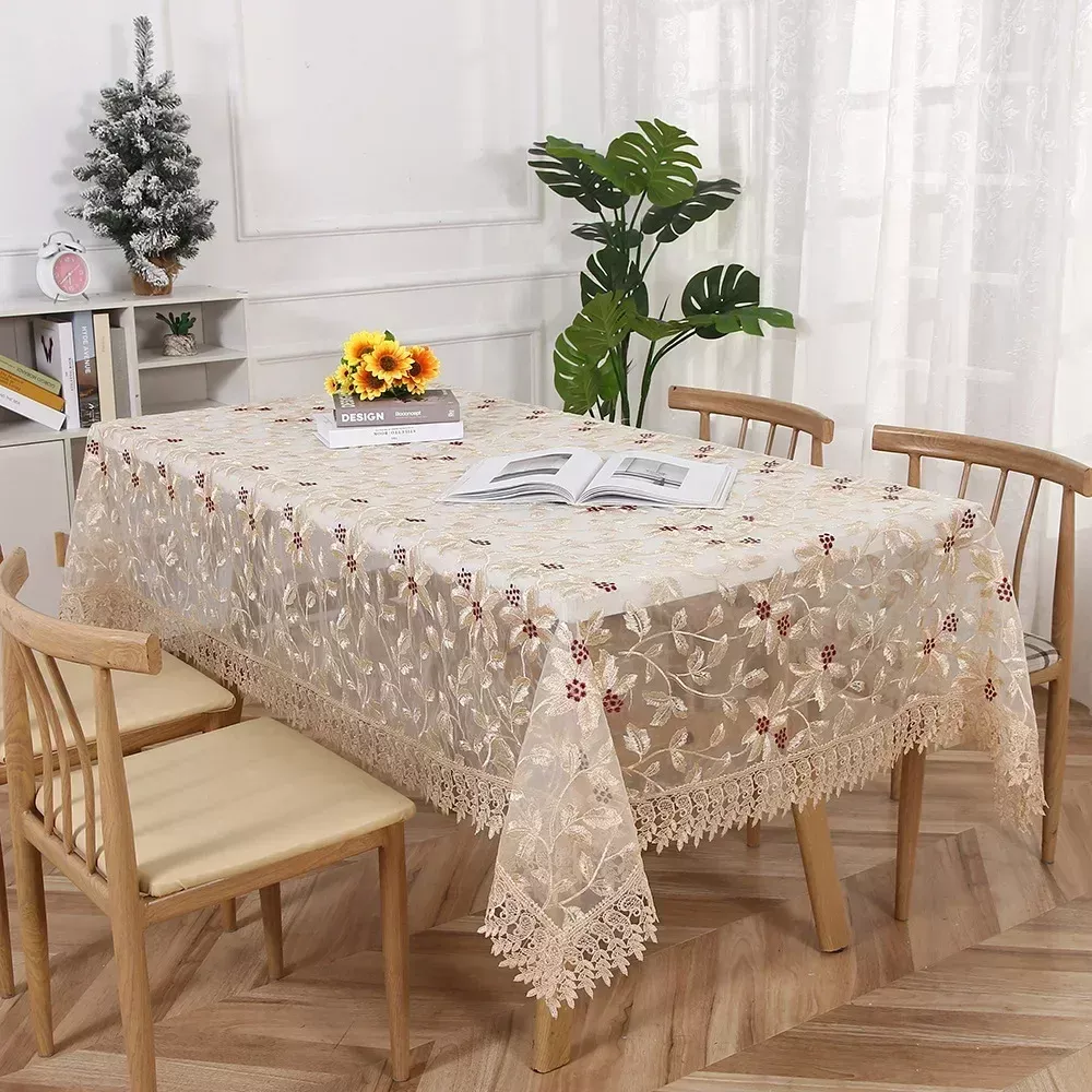 This tablecloth is handmade using premium polyester and cotton blend, ensuring both softness and durability. The intricate tatting craftsmanship and jacquard style weave create a charming texture that stands out beautifully under natural light. Designed with a hollow floral embroidery pattern, it delivers an elegant vintage vibe perfect for modern, classic, or rustic-themed spaces. Measuring ideally for rectangular tables, it’s a versatile piece that fits a variety of table sizes used in homes, hotels, and events.
