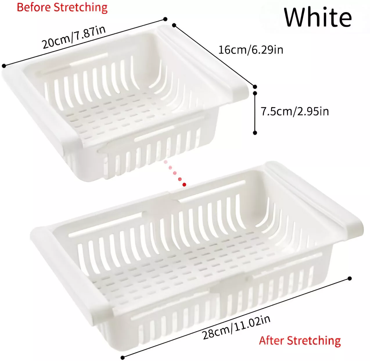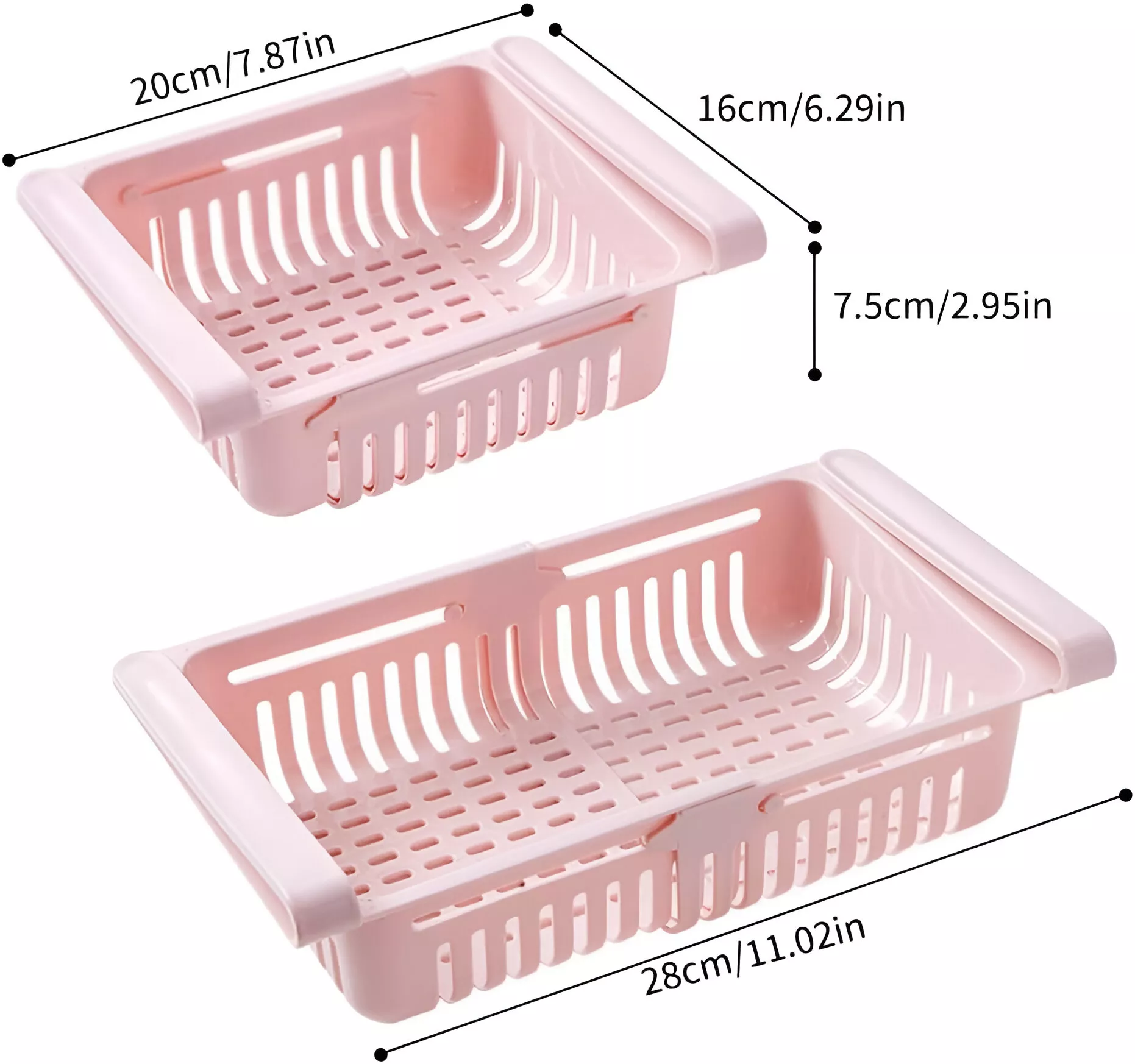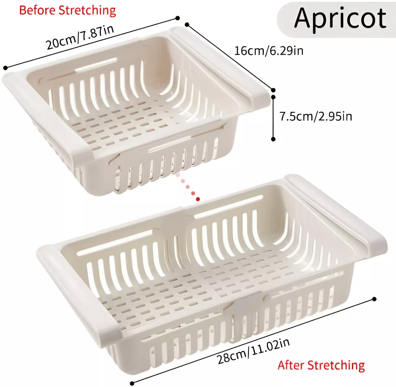 Made from high-quality, eco-friendly plastic (PP), this refrigerator basket is both durable and lightweight. The retractable design allows you to expand the basket, making it twice as large when needed. Hang it directly onto your fridge compartments – no tools, no fuss. Whether you need to store small packets, fresh produce, or leftovers, this organizer adapts to your needs and keeps everything visible and easy to reach.