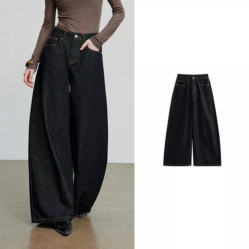 Fashionable Loose Wide Leg Denim Pants – Curved Banana Style for Women
