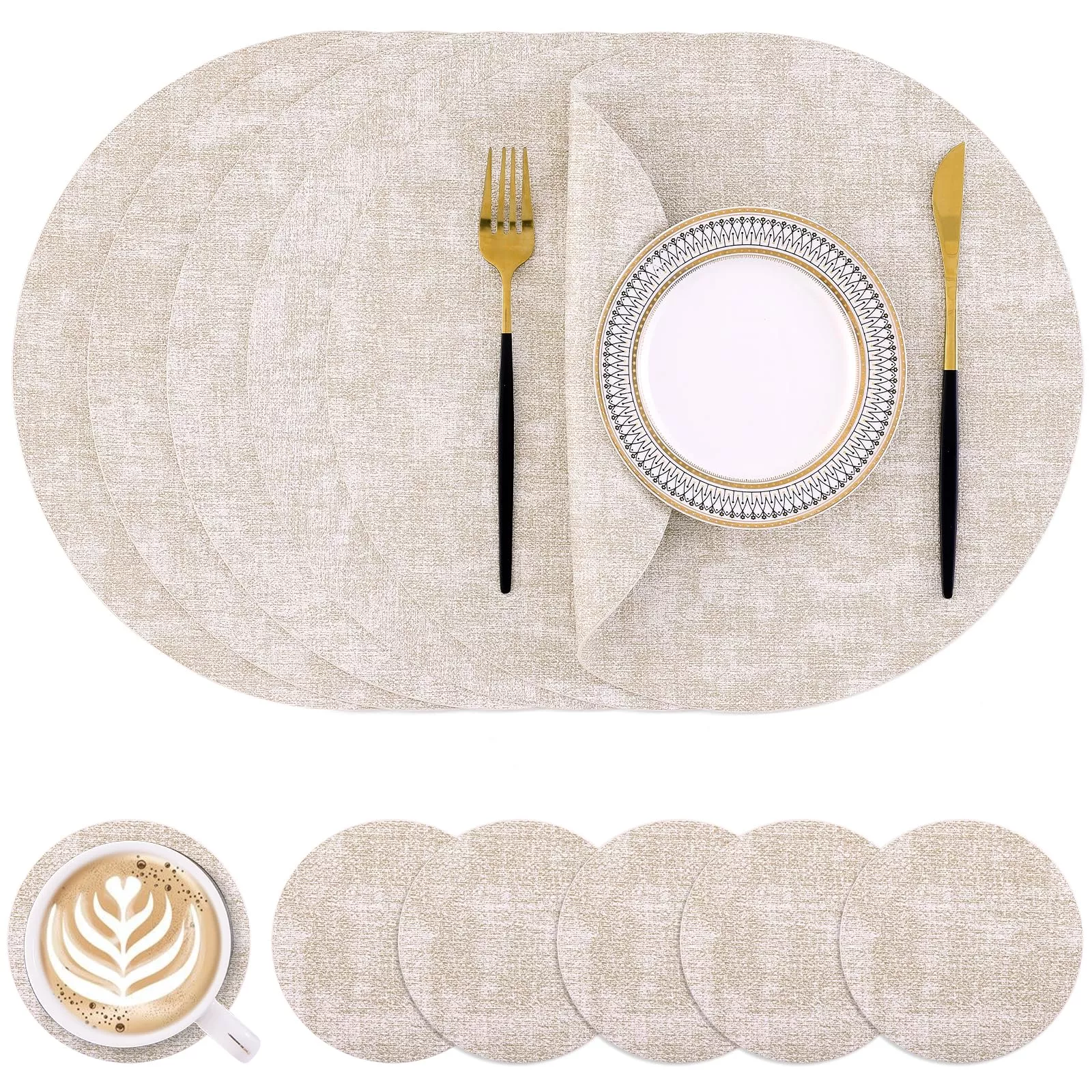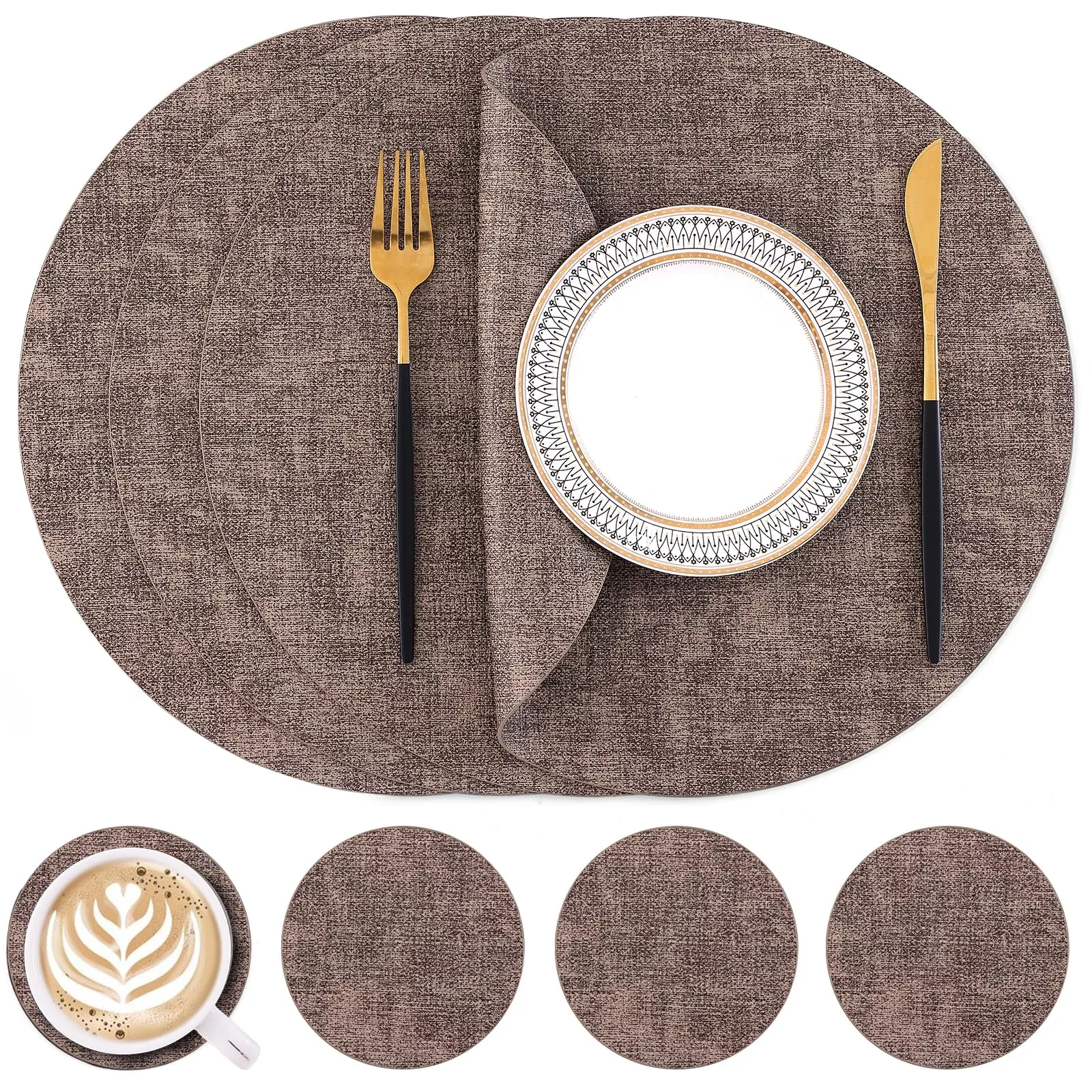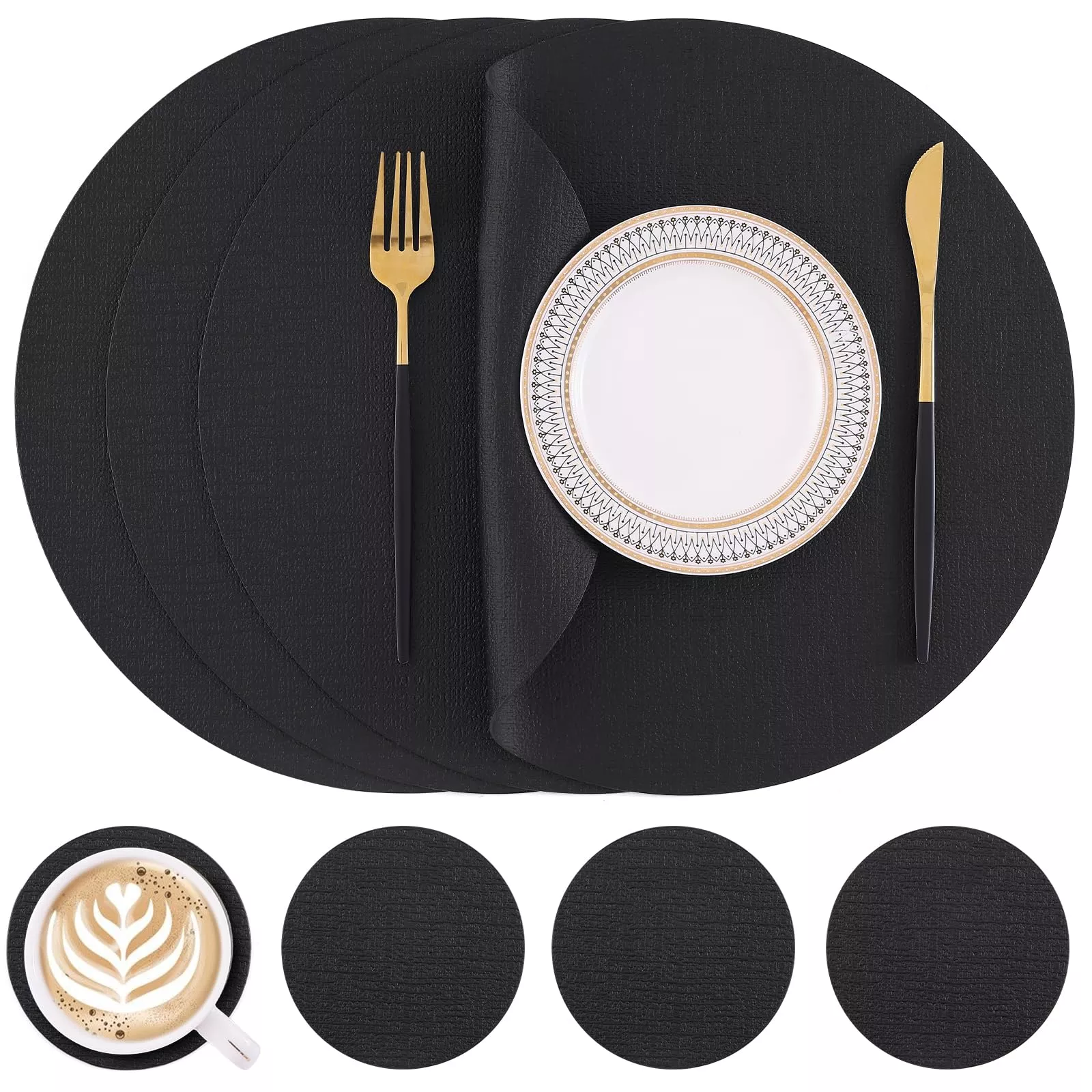 Faux Leather Round Placemats Set with Coasters – Heat-Resistant, Waterproof & Non-Slip
