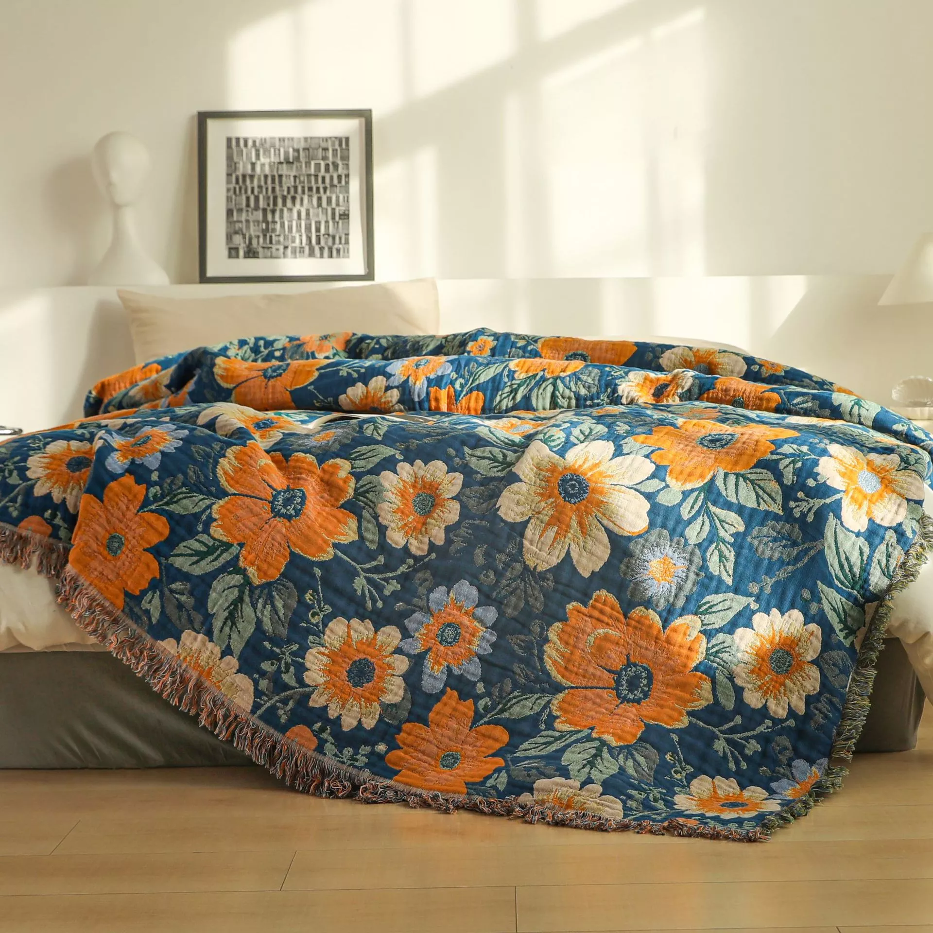 Floral Non-Slip Sofa Towel Cover – Jacquard Cotton Gauze, High Quality, Four Seasons
