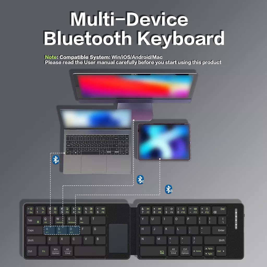 Turn any space into a productive workspace with this foldable Bluetooth keyboard with touchpad. Designed for people who work, write, and create on the move, it gives you the feel of a full desktop keyboard in a compact, pocket-friendly design. Whether you are answering emails at a café, taking notes during travel, or editing documents on your tablet, this keyboard lets you work faster and more comfortably.