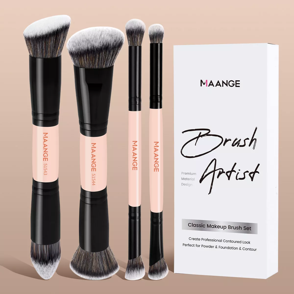 Foundation Makeup Brushes Set 4pcs Double-Ended for Face & Eye Blending