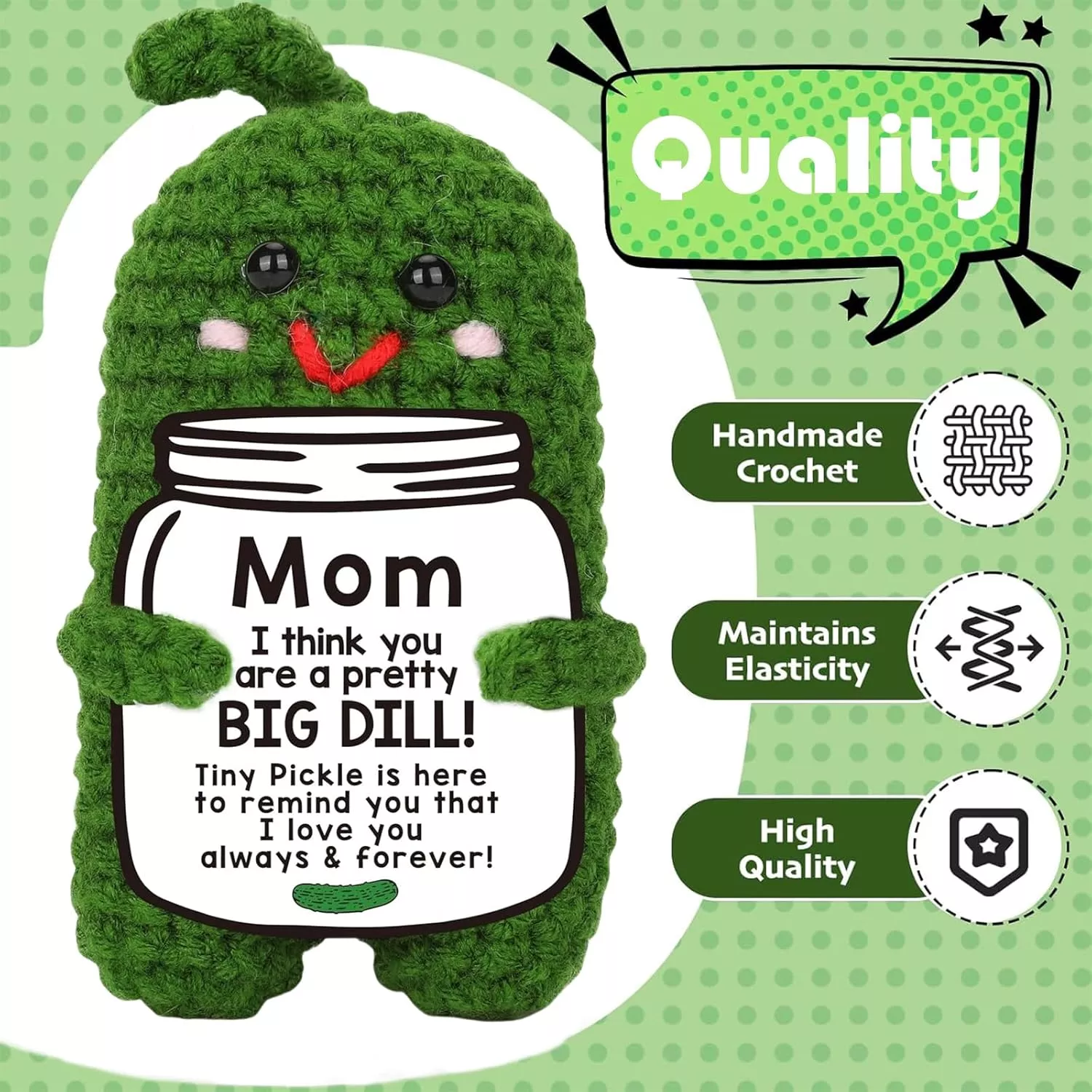 Make your day unforgettable with a gift that’s heartfelt and hilarious. Order your Funny Crochet Pickle Plush Doll today and surprise your mom with a little green bundle of joy that says, “You’re kind of a big dill!”