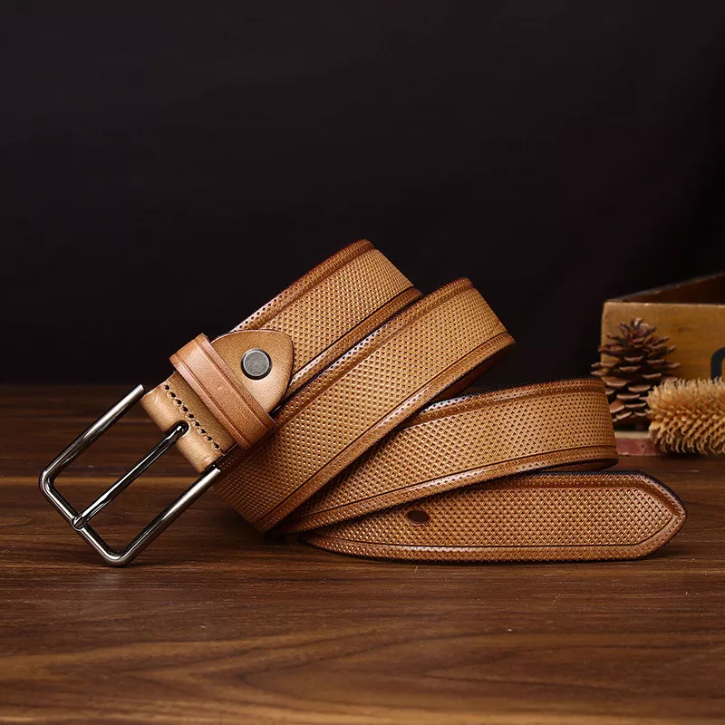 Genuine Leather Belt for Men – 3.3CM High Quality Cowhide Strap with Pin Buckle