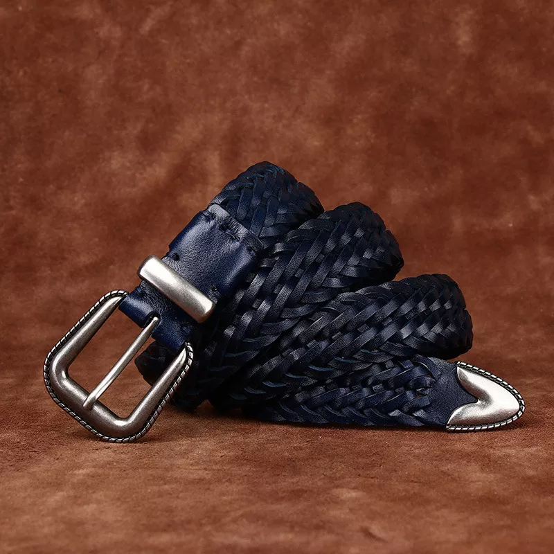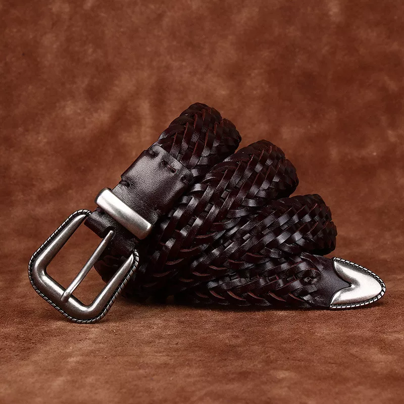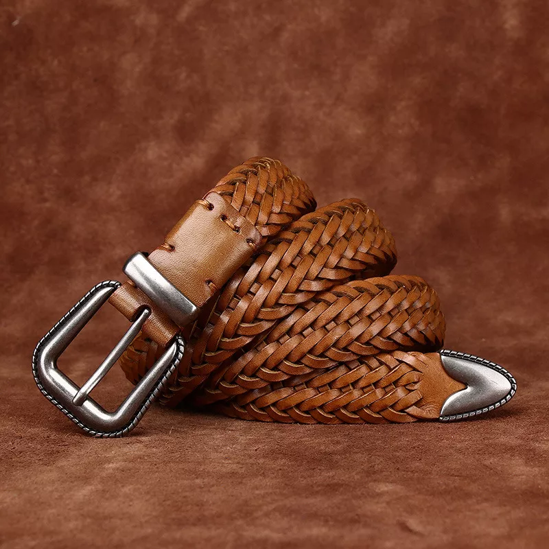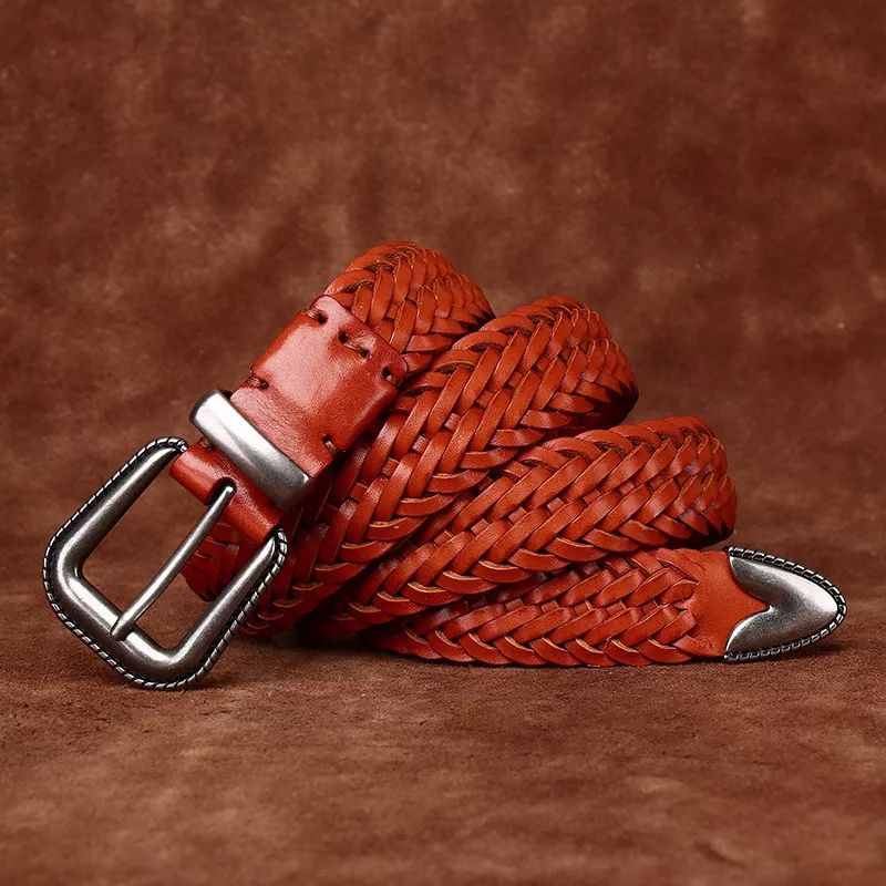 Genuine Leather Hand-Woven Belt for Men & Women – Pin Buckle, 3.2cm Width