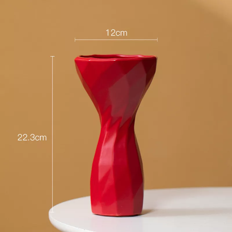 Bring a touch of sophistication into your home with this stunning geometric ceramic vase. With its modern design and smooth matte finish, this decorative piece instantly transforms any room into a stylish haven. Whether you use it as a centerpiece on your dining table, a focal point on your shelf, or an accent on your coffee table, it adds charm and elegance without overwhelming your space. Medium in size, it is perfectly versatile for both small and large arrangements.