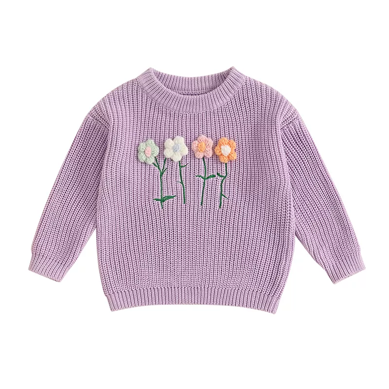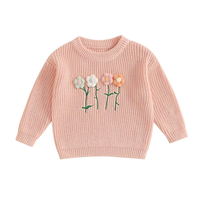 Girls Long Sleeve Crew Neck Flower Winter Sweater – Warm Casual Clothing