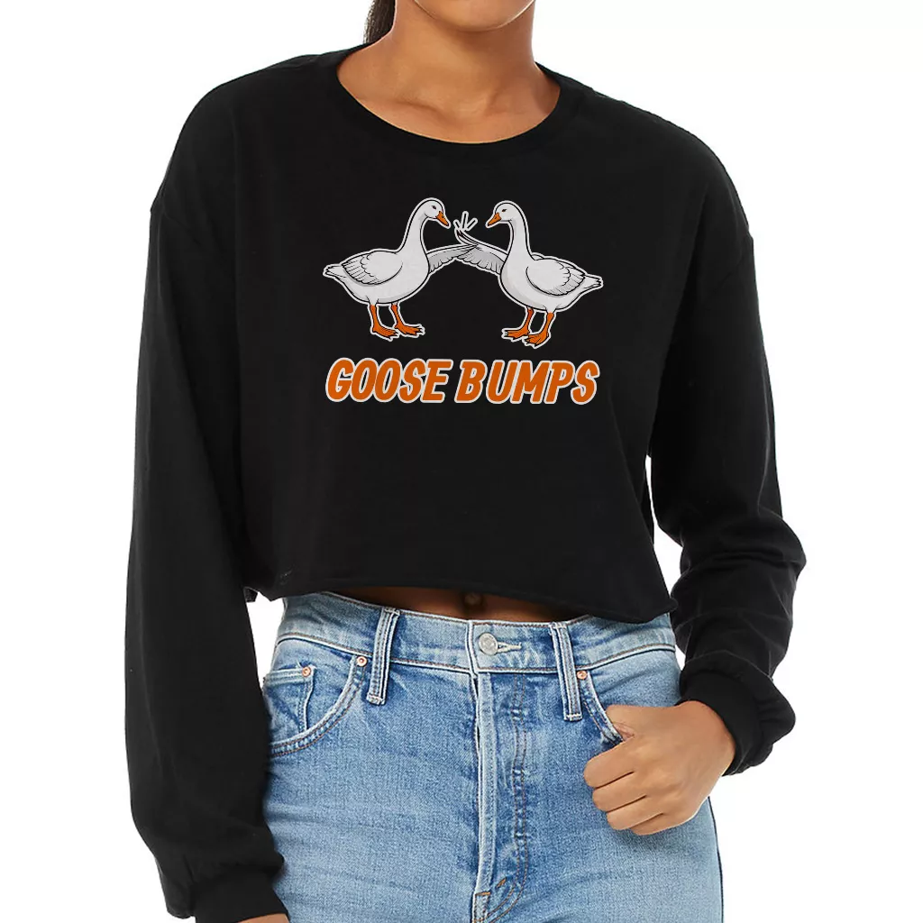Goose Bumps Cropped Long Sleeve Sweatshirt – Silly Goose Women’s Crop Top – Funny Goose Long Sleeves Pullover
