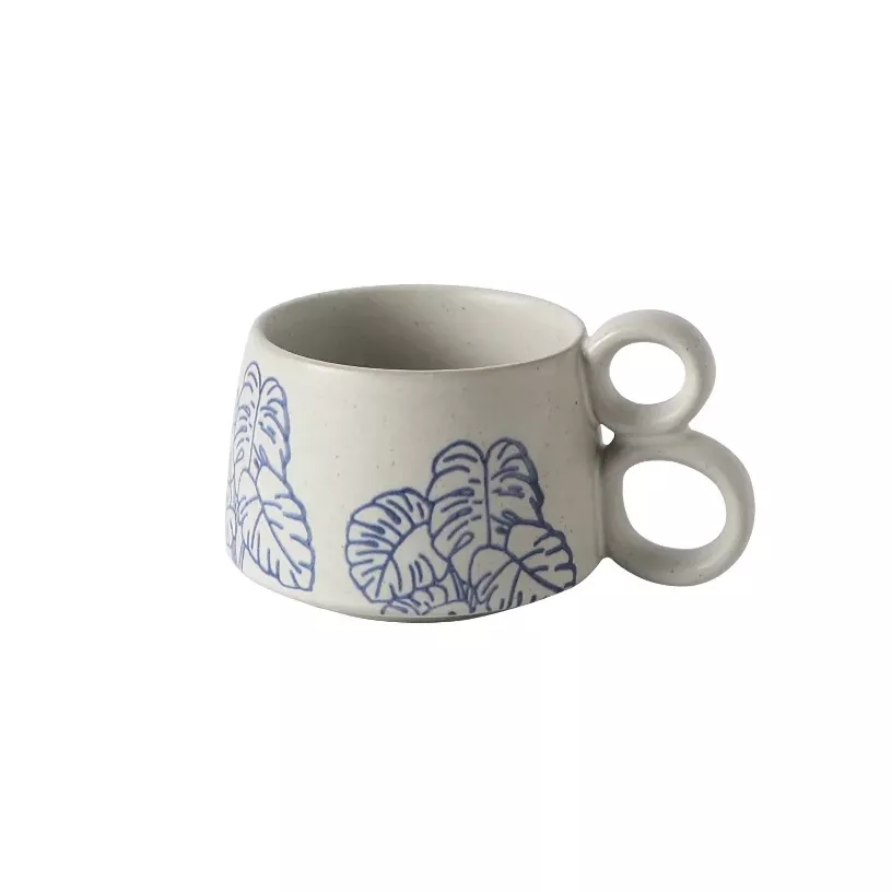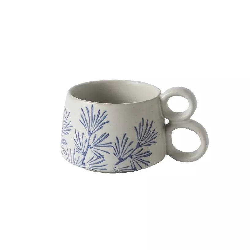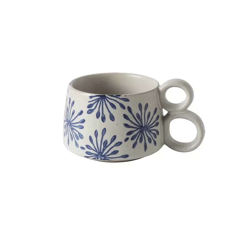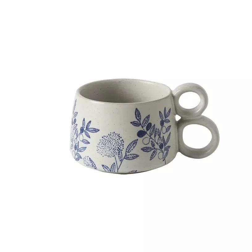 Hand Painted Blue and White Glaze Mug – Retro Stoneware Coffee Cup
