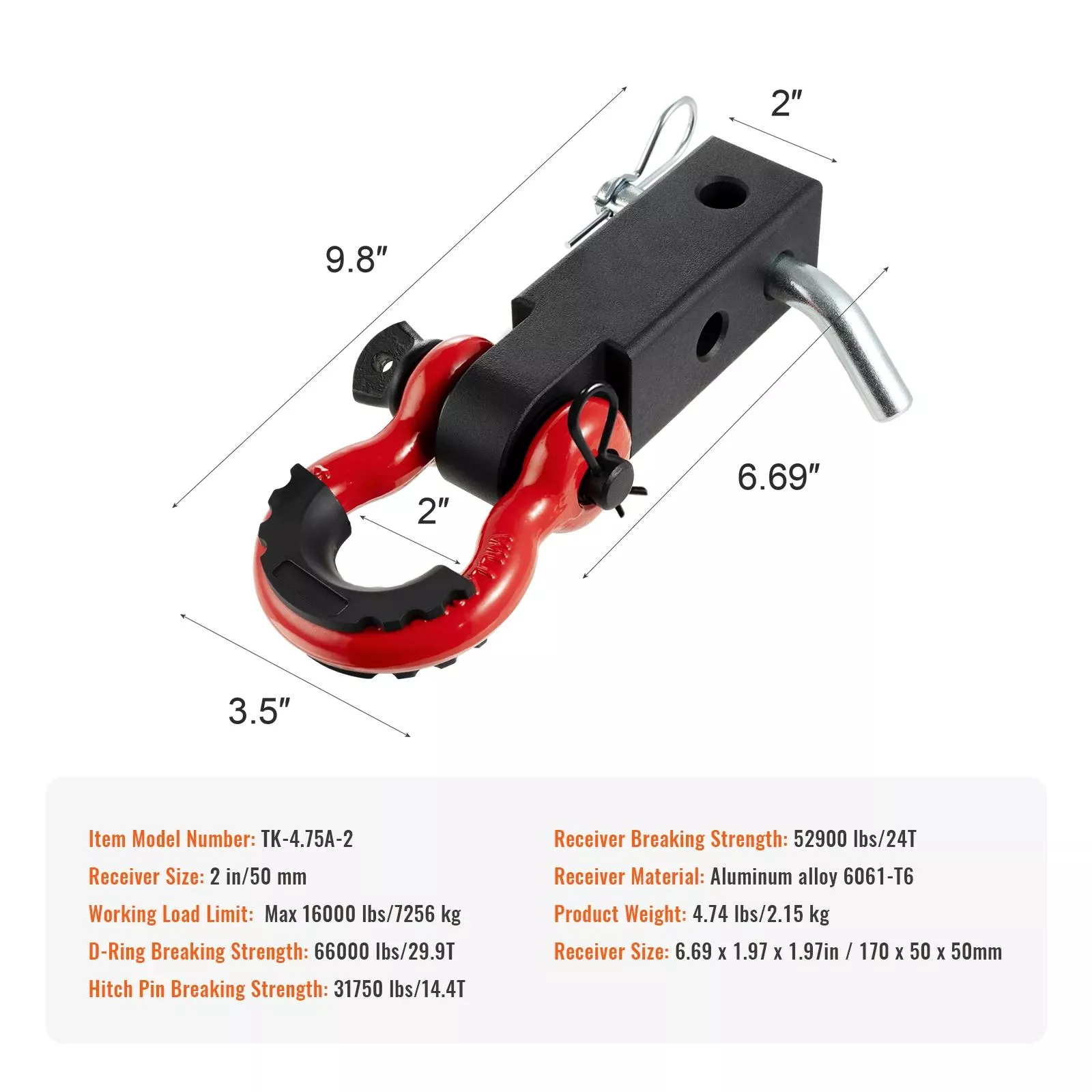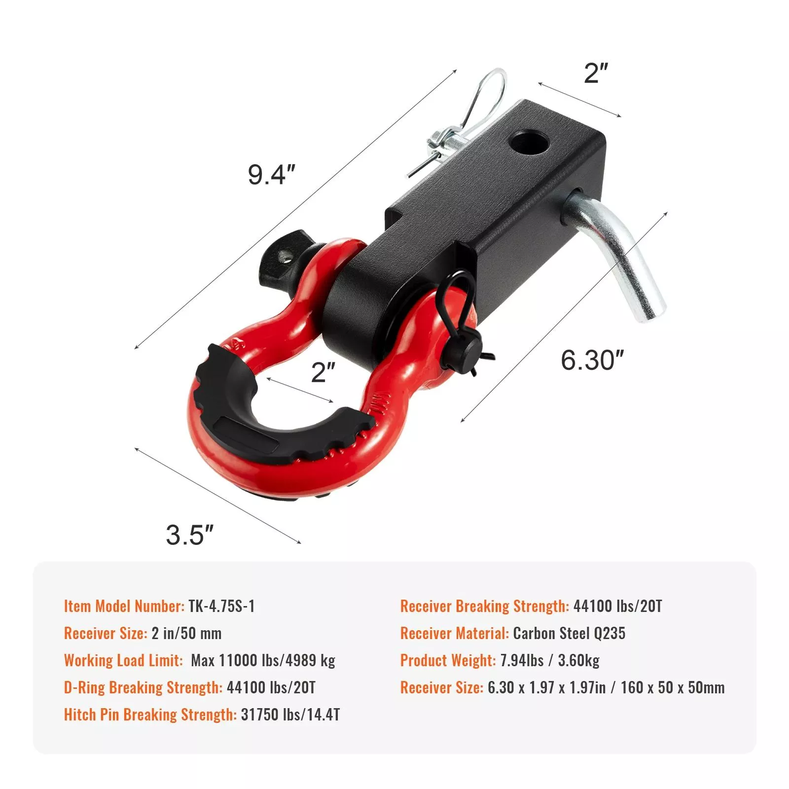 Heavy-Duty 2″ D-Ring Shackle Hitch Receiver with Lock Pin for Towing & Recovery