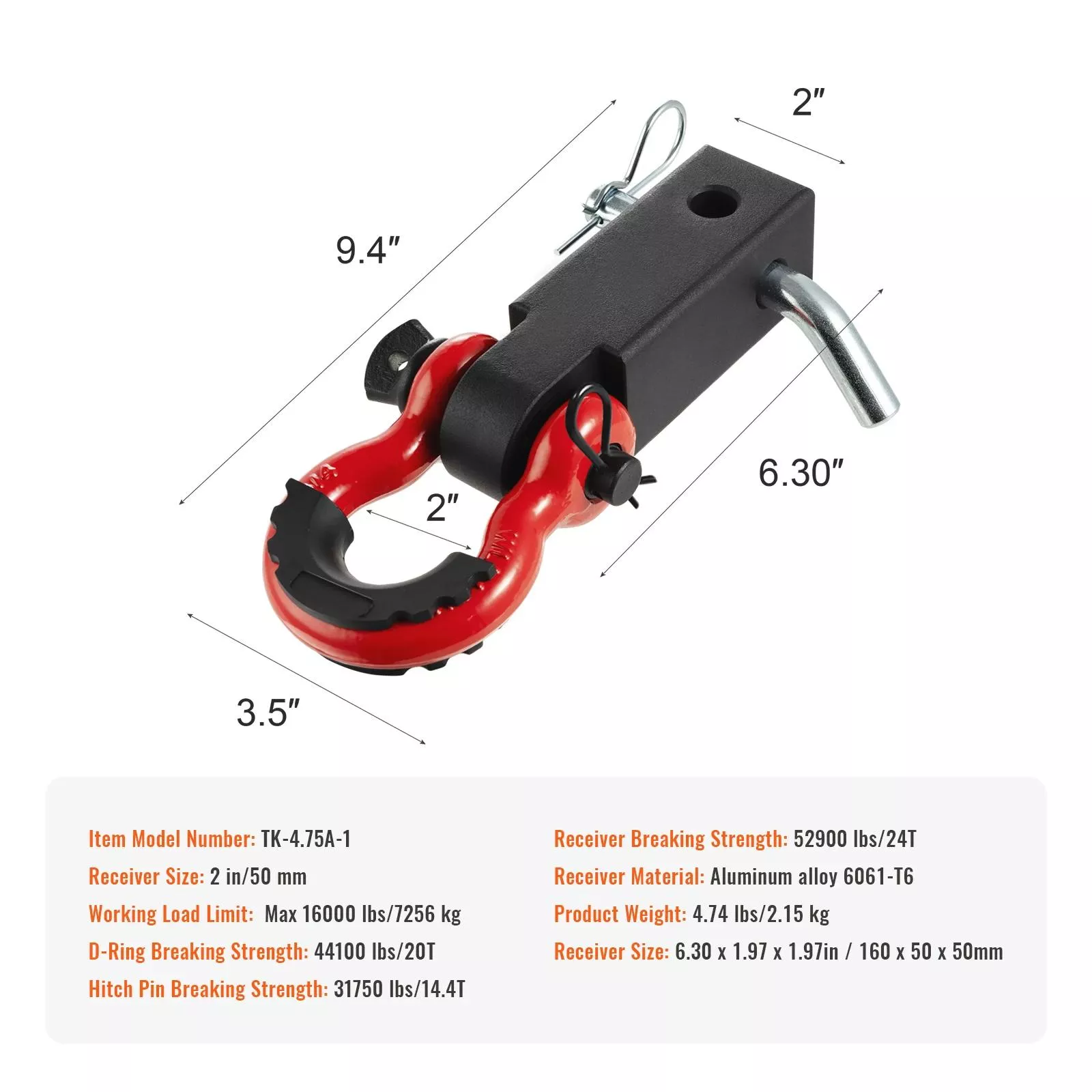 Crafted from industrial-strength materials, this shackle hitch receiver is engineered to handle demanding conditions without weighing you down. It features a high working load limit of up to 16,000 lbs and an ultra-strong D-ring with an impressive breaking strength of up to 65,900 lbs. A corrosion-resistant finish protects against rust, scratches, rain, and mud, making it ideal for year-round use in any environment.
