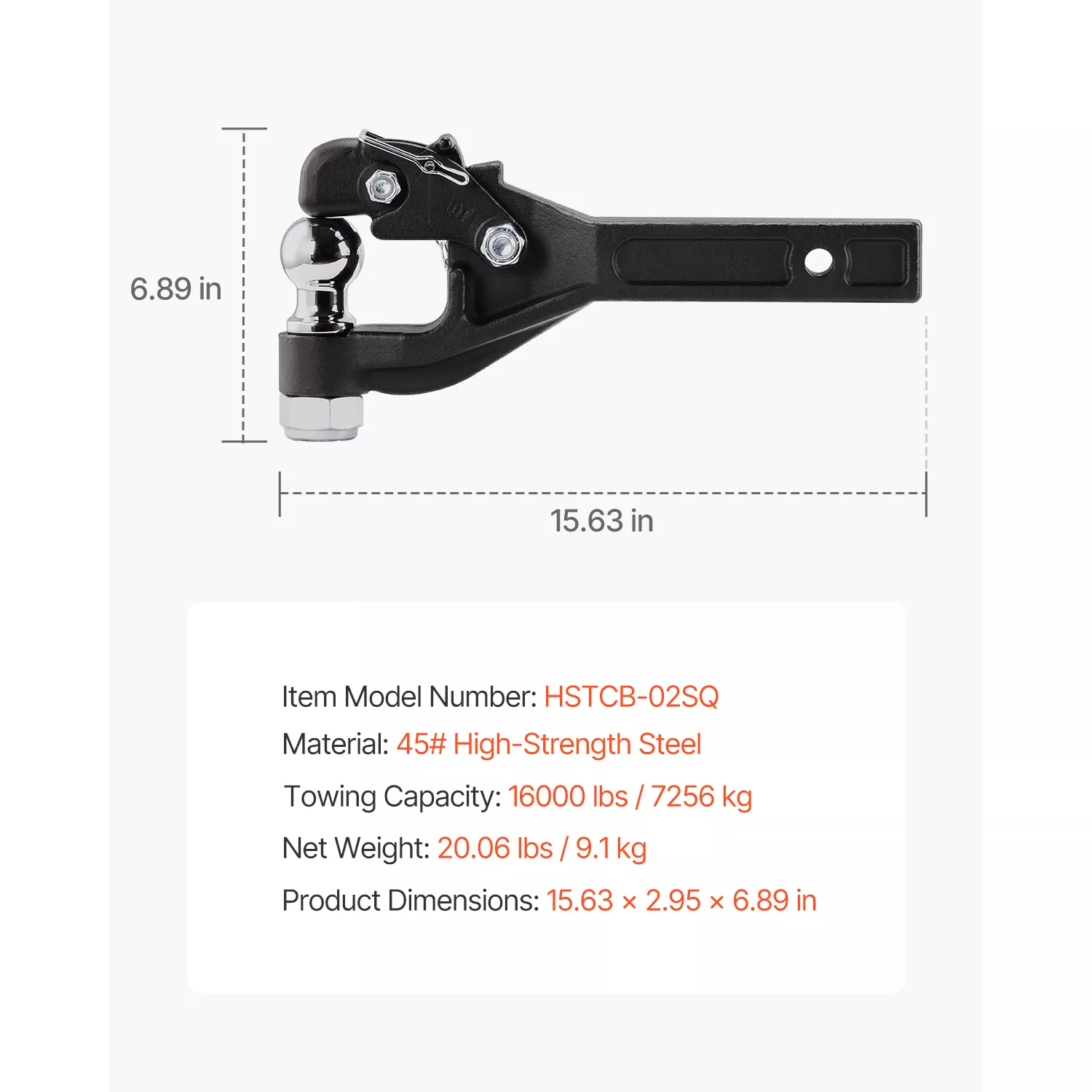 Featuring a standard 2-inch connection receiver, this hitch easily connects with 2.5 to 3-inch lunette rings, receiver rings, and ball couplers. From heavy-duty trucks to tractors, SUVs, ATVs, and off-road vehicles, it offers the flexibility you need for a variety of towing equipment. Perfect for outdoor adventures, long-distance trips, and emergency recoveries, this hitch is always ready for action.