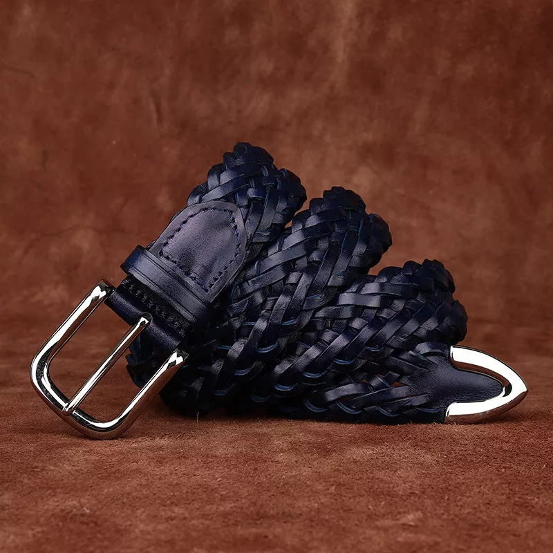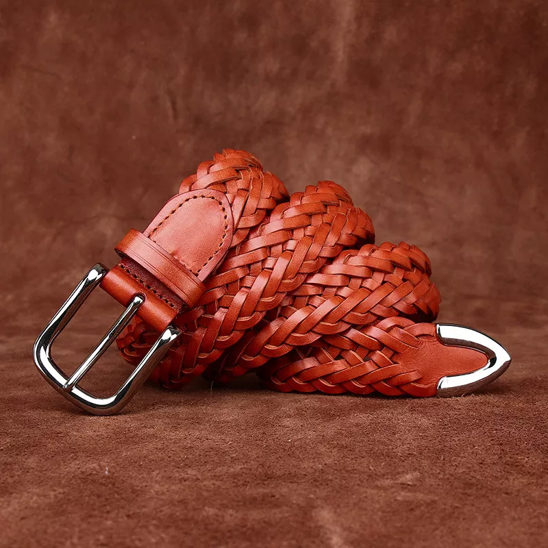 High Quality 3.5CM Genuine Leather Hand-Woven Belt for Men & Women