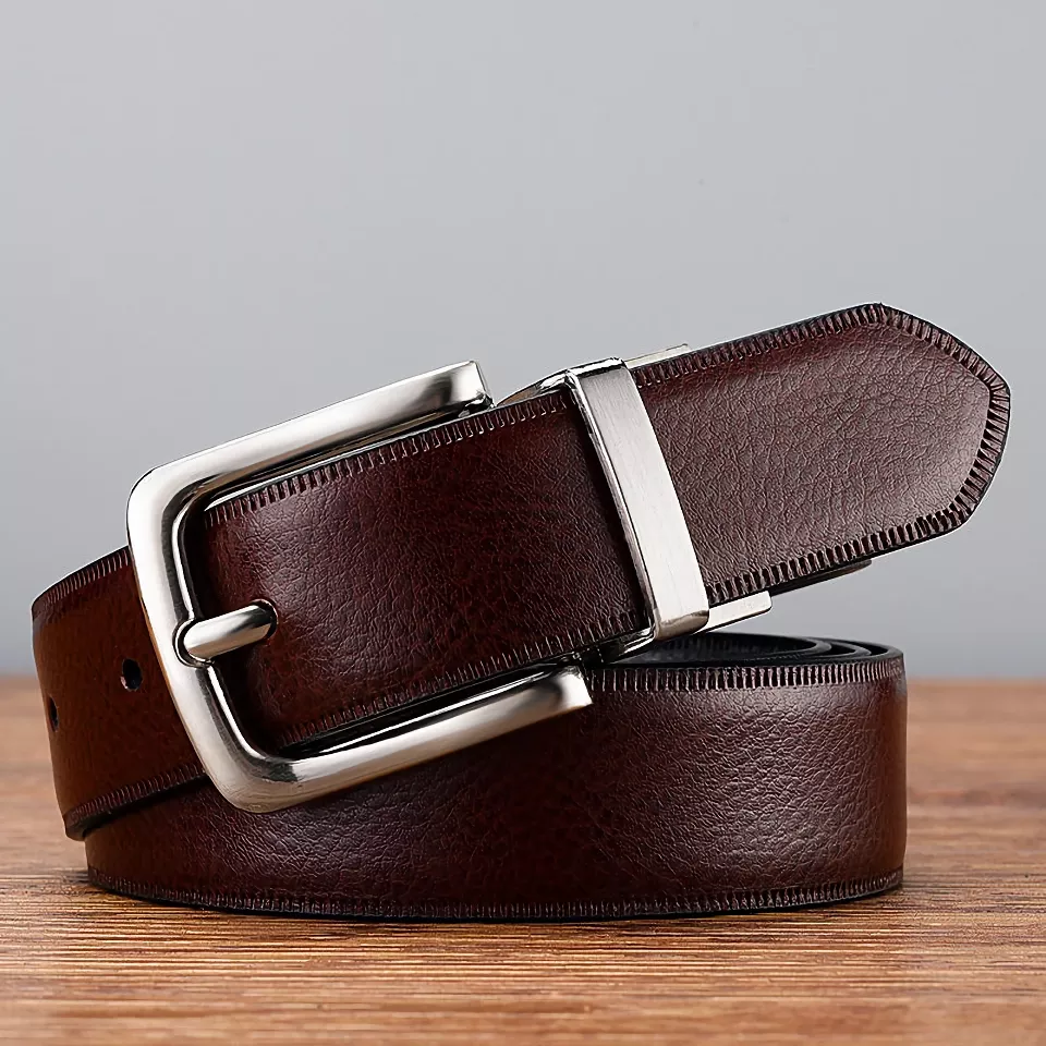 High Quality Genuine Leather Double-Sided Belt for Men – Pin Buckle, Rotating Design