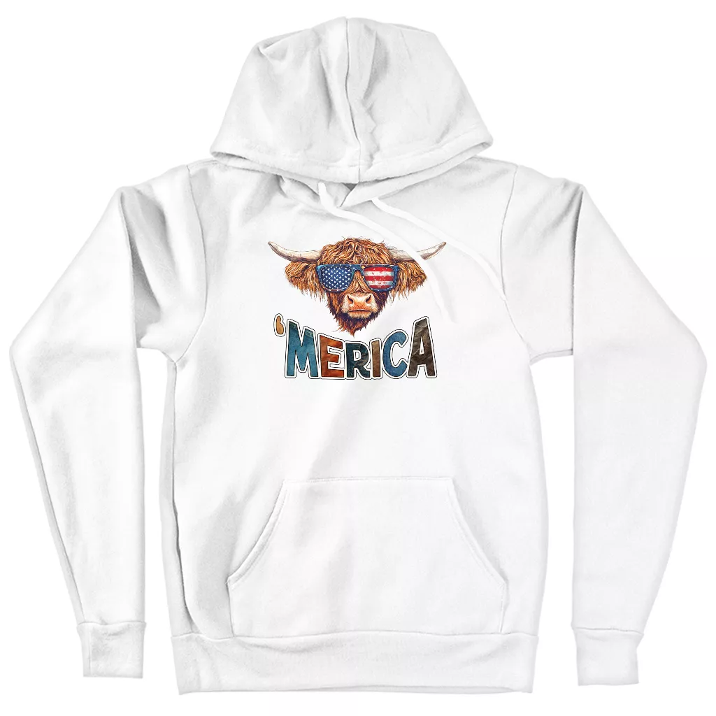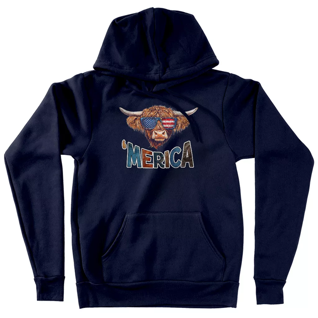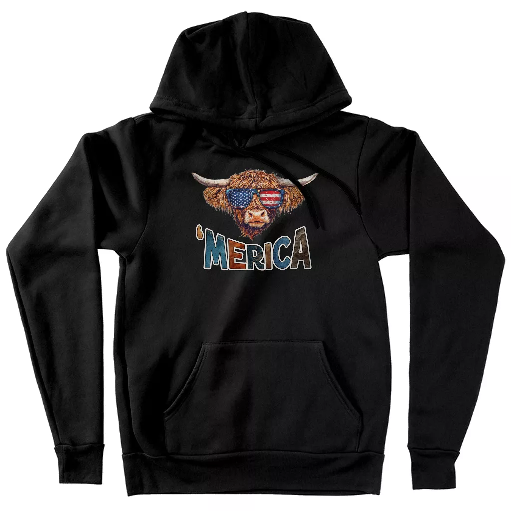 Highland Cow Hoodie – Merica Hooded Sweatshirt – Cool Design Unisex Hoodie