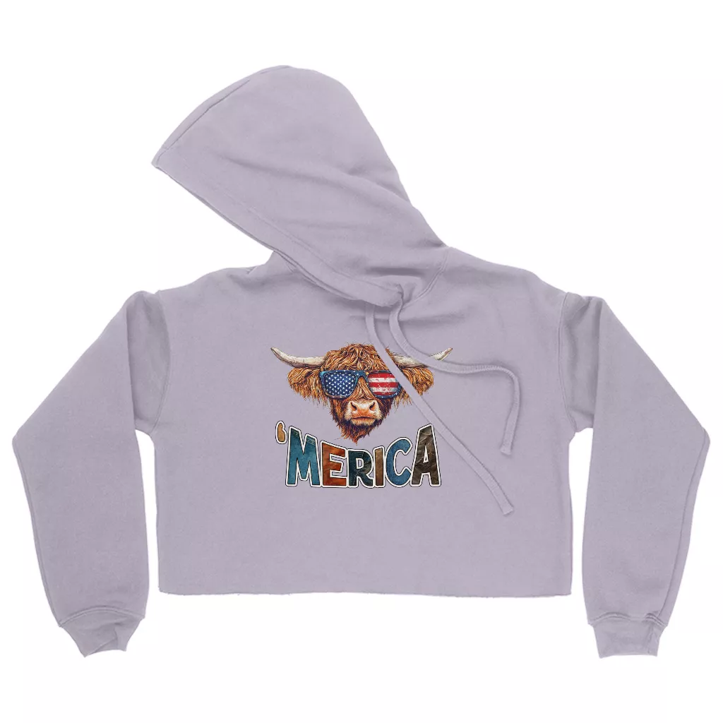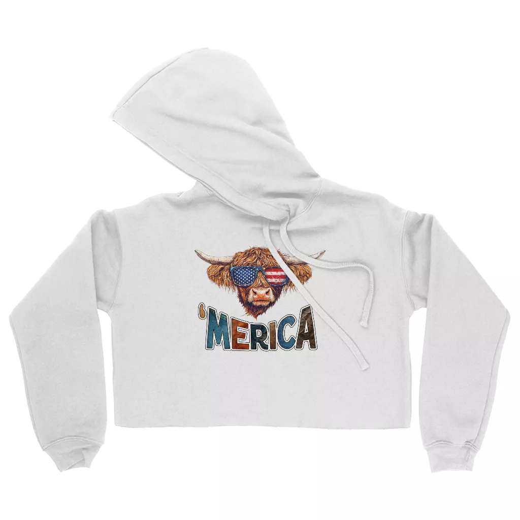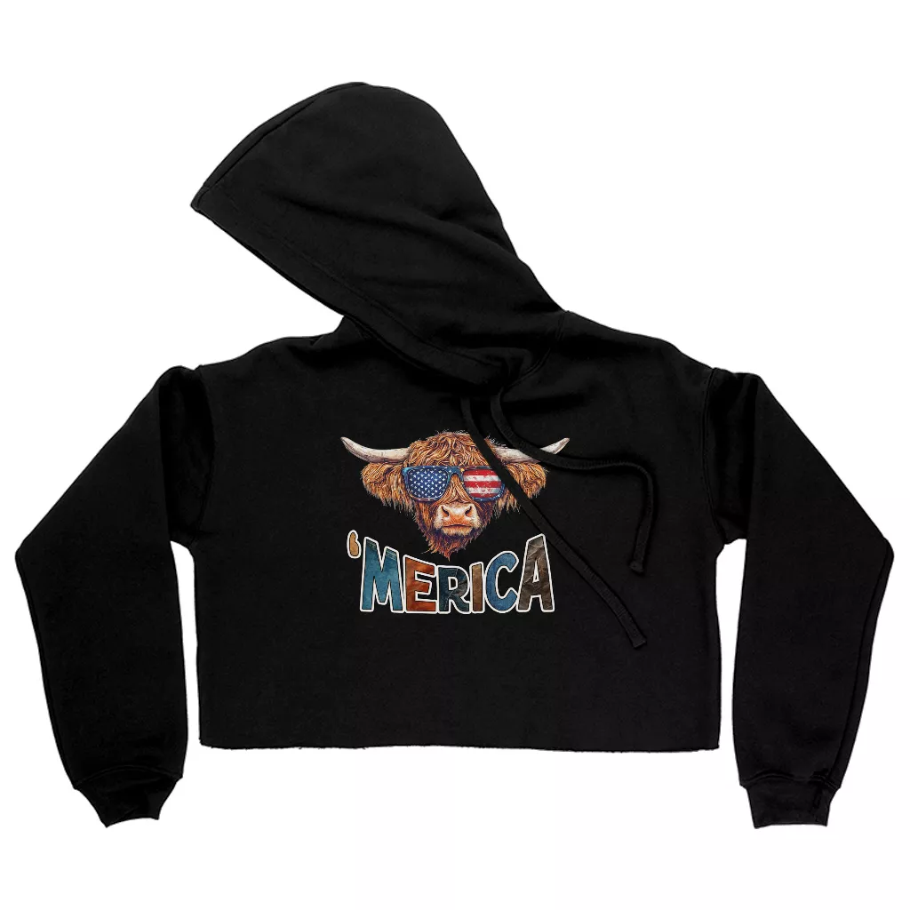 Highland Cow Women’s Cropped Hoodie – Merica Hooded Sweatshirt – Cool Design Super Crop Top Hoodies