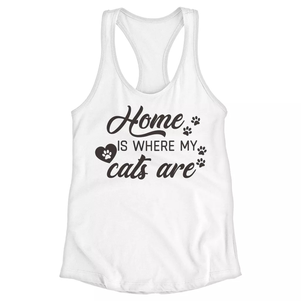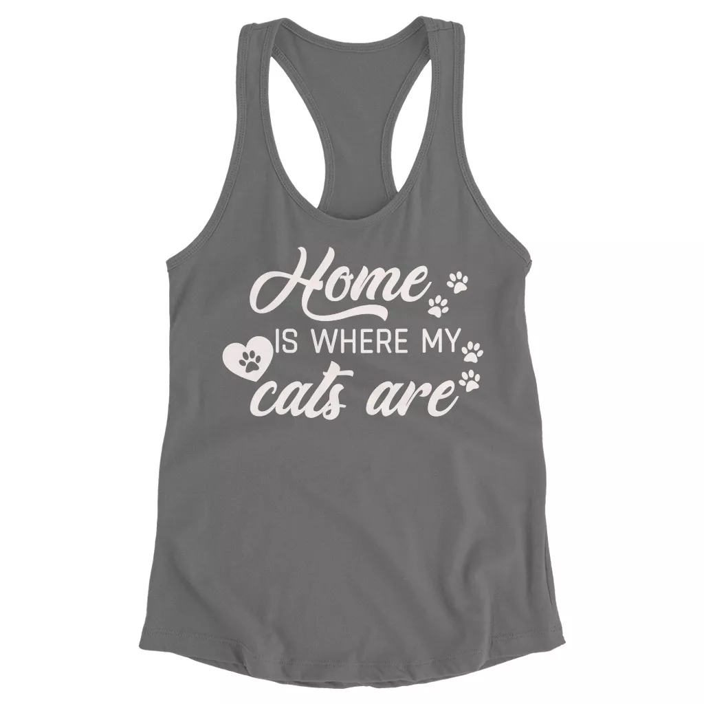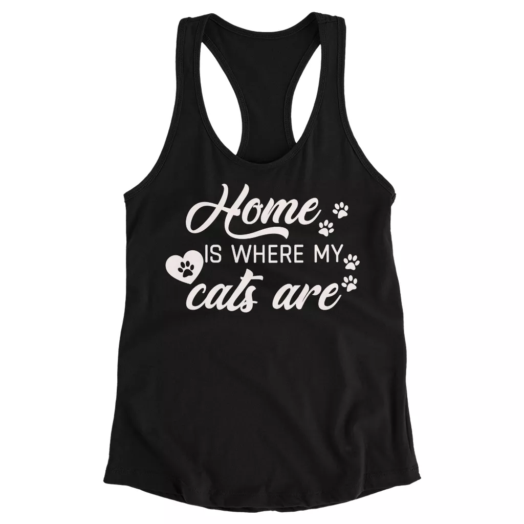 Home Is Where My Cats Are Racerback Tank – Cat Lover Tank Top – Funny Pet Tank