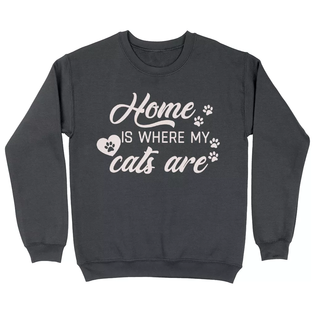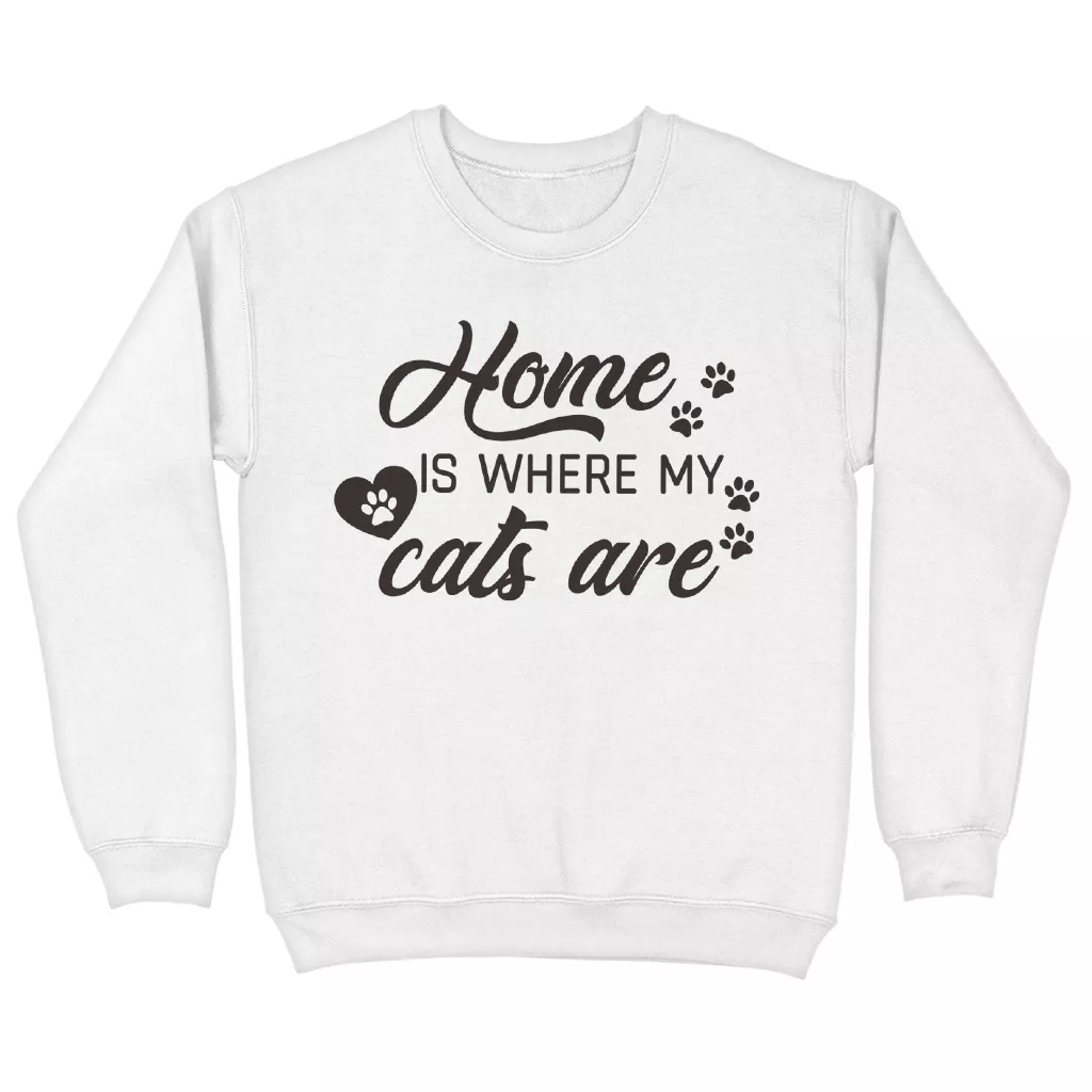 Home Is Where My Cats Are Sweatshirt – Cat Lover Crewneck Sweatshirt – Funny Pet Unisex Sweatshirt