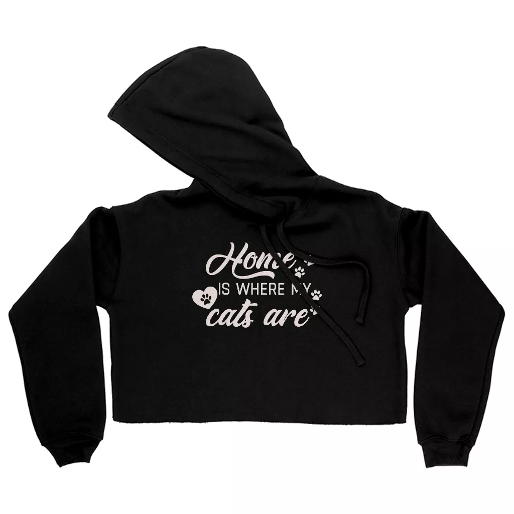 Home Is Where My Cats Are Women’s Cropped Hoodie – Funny Pet Hooded Sweatshirt – Cat Lover Super Crop Top Hoodies