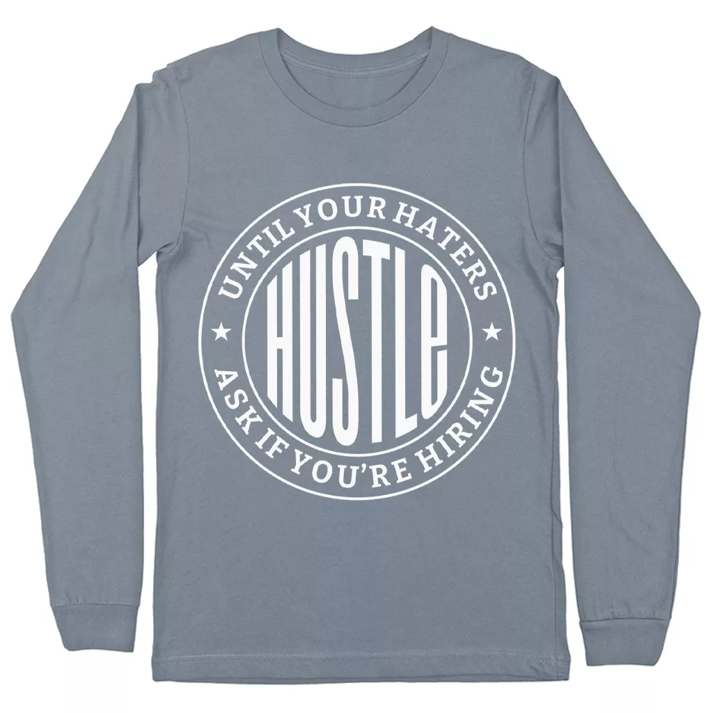 Hustle Until Your Haters Ask If You’re Hiring Long Sleeve T-Shirt – Hustle and Grind T-Shirt – Funny Basic Tee